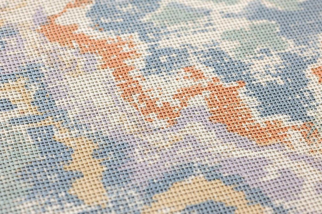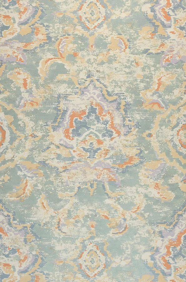 Sie lieben das Surrealistische, das Unfassbare, Kreationen, die zum Nachdenken anregen? Design Tapete Lompal in einer Farbkombination aus Pastellgrün, Azurblau, Beige, Minttürkis, Orange und Pastellviolett eröffnet die Welt der Fantasien. Ethno-Ornamente im indischen Stil mit Batikcharakter laden zum Erspüren ein und das im wahrsten Sinne des Wortes, denn die Vinyloberfläche weist eine textilähnliche Struktur auf.