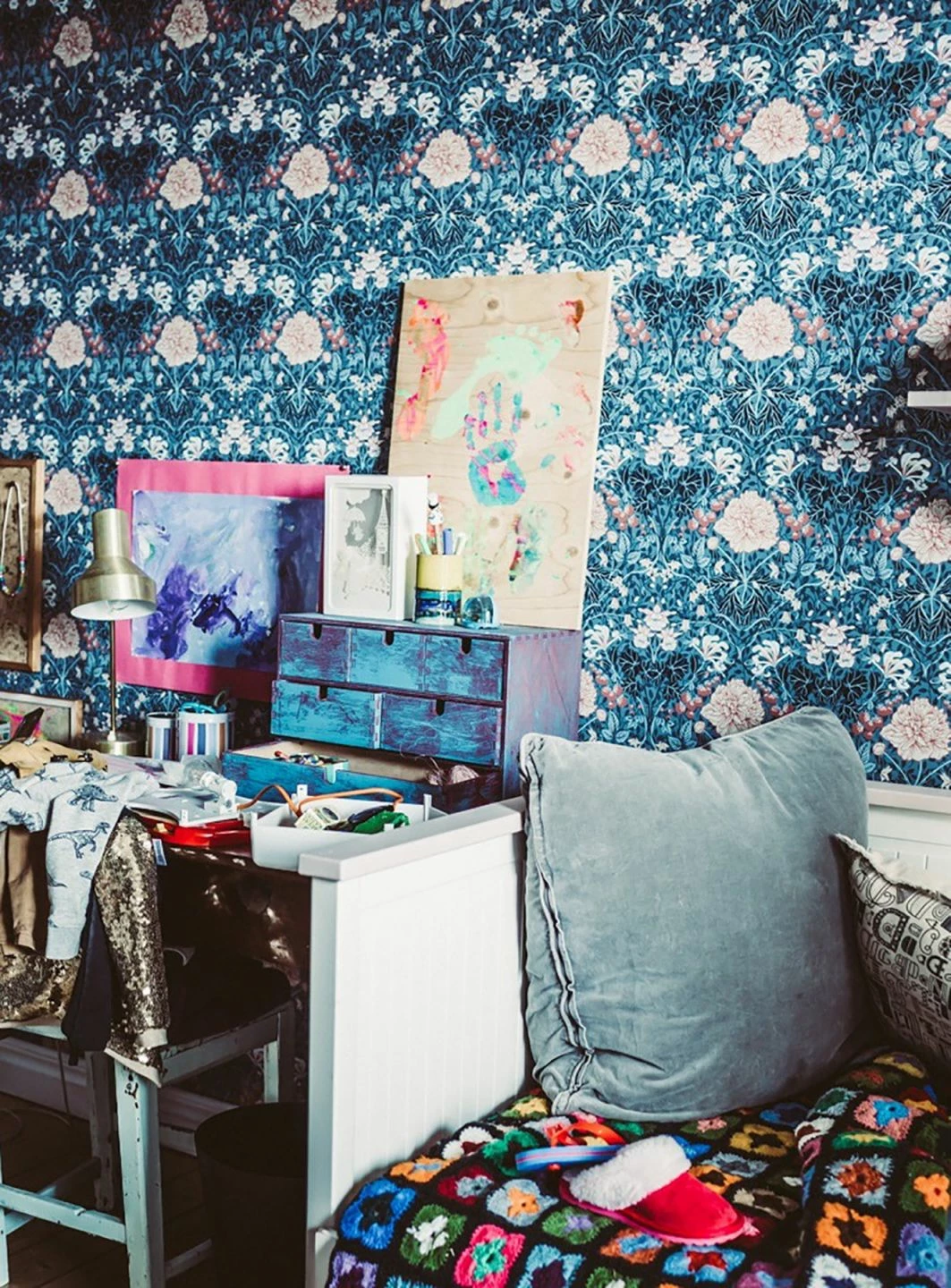 Zur blauen nostalgischen Stunde laden wir herzlich ein. Klassiktapete Lovisa regt in der Farbstellung aus Taubenblau, Braunrot, Hellblau, Hellelfenbein und Schwarzblau selbst feinste Synapsen an und sorgt für schöne kreative Gedanken. Die waschbeständige Vliestapete mit prächtigem Ornamentmuster macht verliebt.