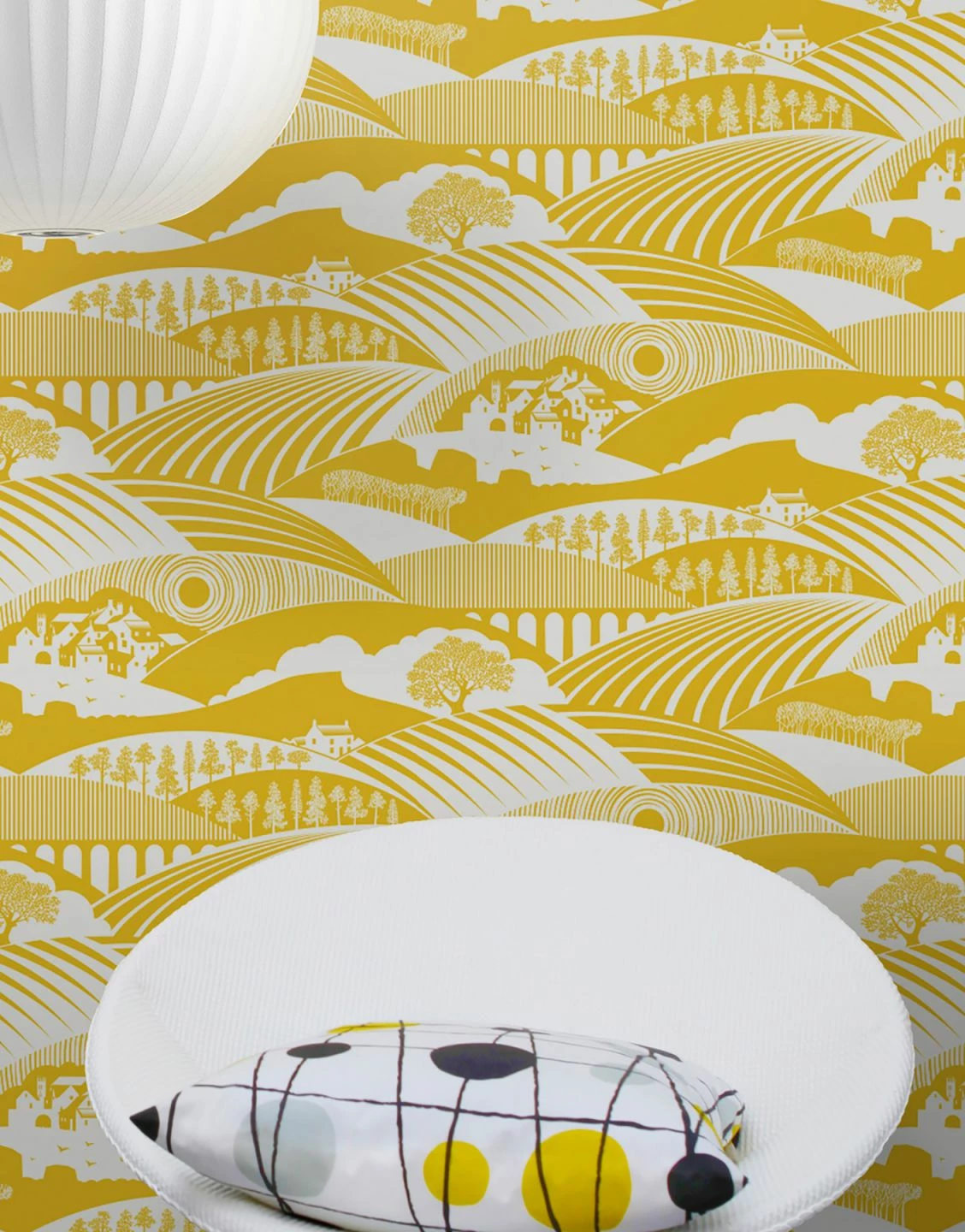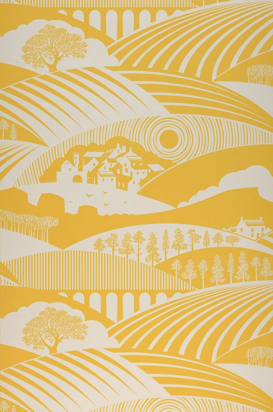 Gelb ist Sonnenschein, Energie Lebenslust. Das landschaftliche Mustermotiv der Romantik Tapete bedient sich unterschiedlicher geometrischer Formen und Strukturen. Das Ergebnis hält den Geist wach und aktiv, nimmt mit auf eine Wellenreise über Berge und Täler mit einer reichen Aussichtsvielfalt. Grauweiß und Zitronengelb garantieren ein intensives Farberlebnis.