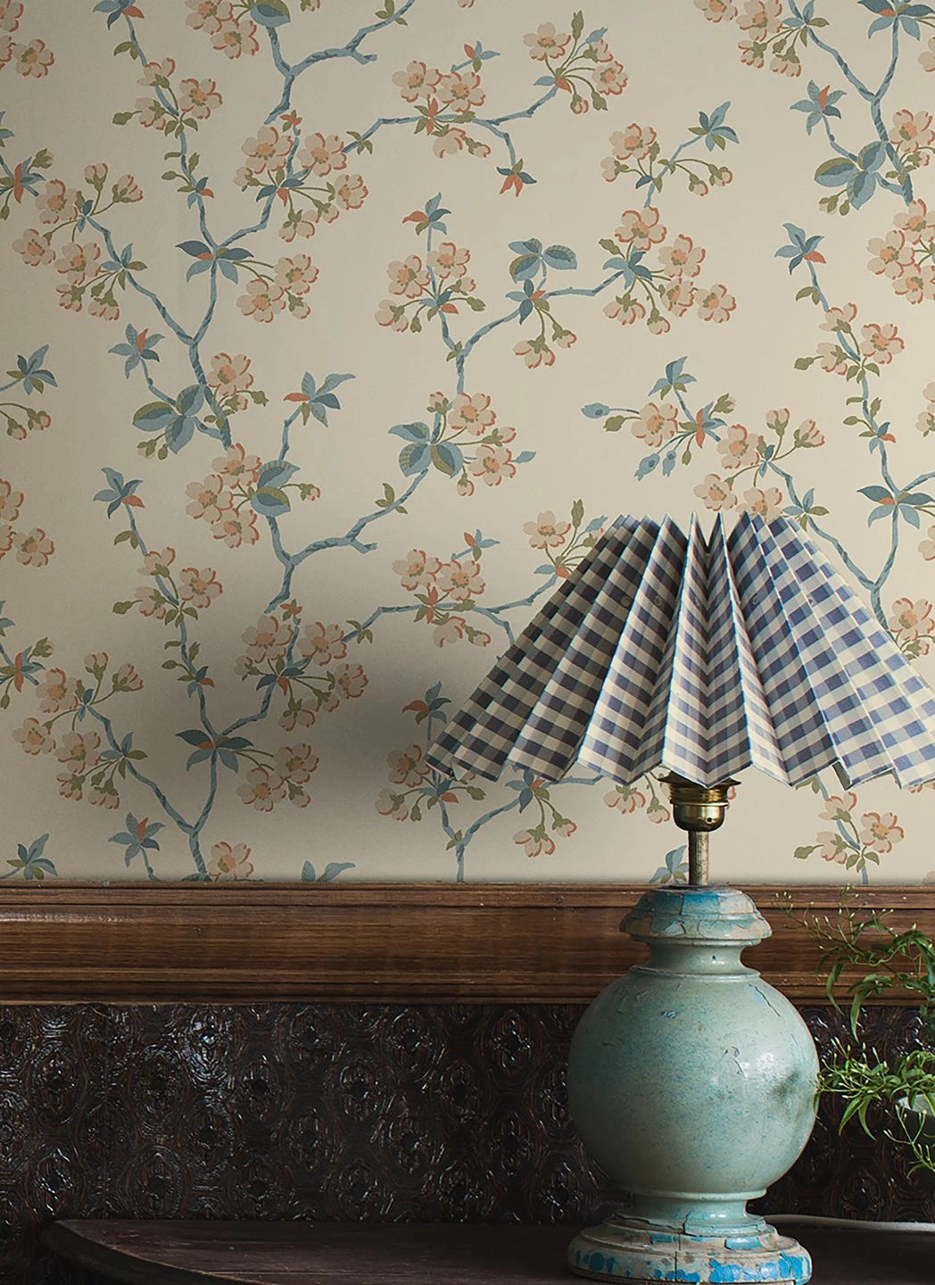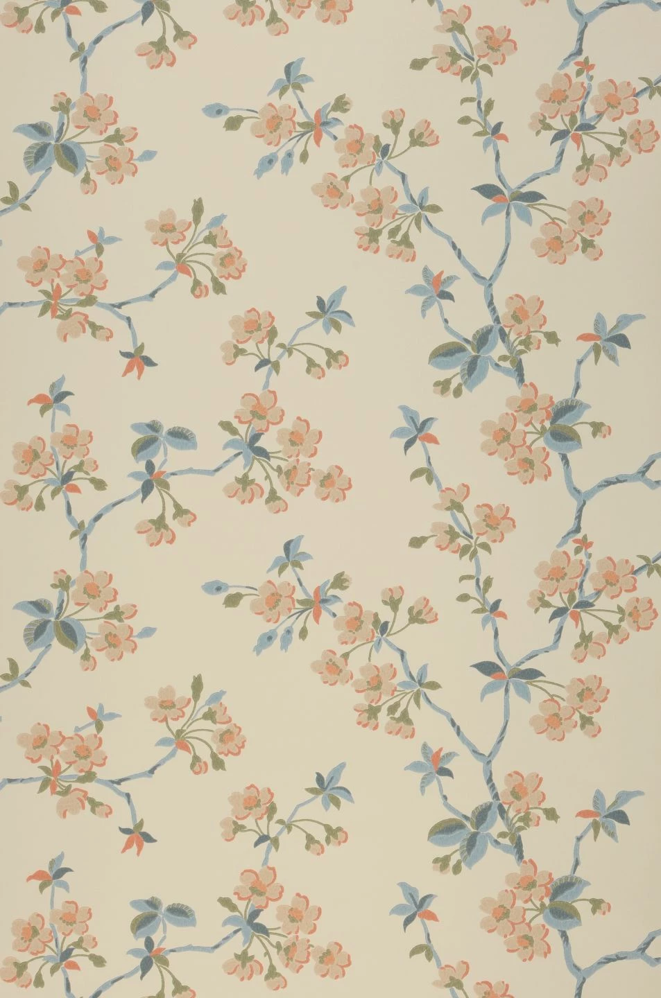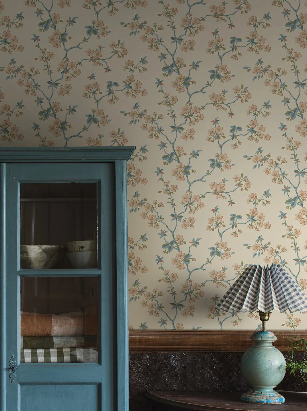Das Muster aus blühenden Obstzweigen auf Vliestapete Maja bringt eine nostalgische Gemütlichkeit mit und versetzt Sie in die Geborgenheit eines ruhigen, ländlichen Wohnzimmers. Denn die Beige- und Brauntöne, das Olivgrün und das Azurblau auf dem cremeweißen Grund lassen die Tapete aussehen wie eine Vintage-Kostbarkeit. Antike Holzmöbel, aber auch skandinavische Einrichtungselemente kreieren zusammen mit ihr ein erholsames Zuhause.