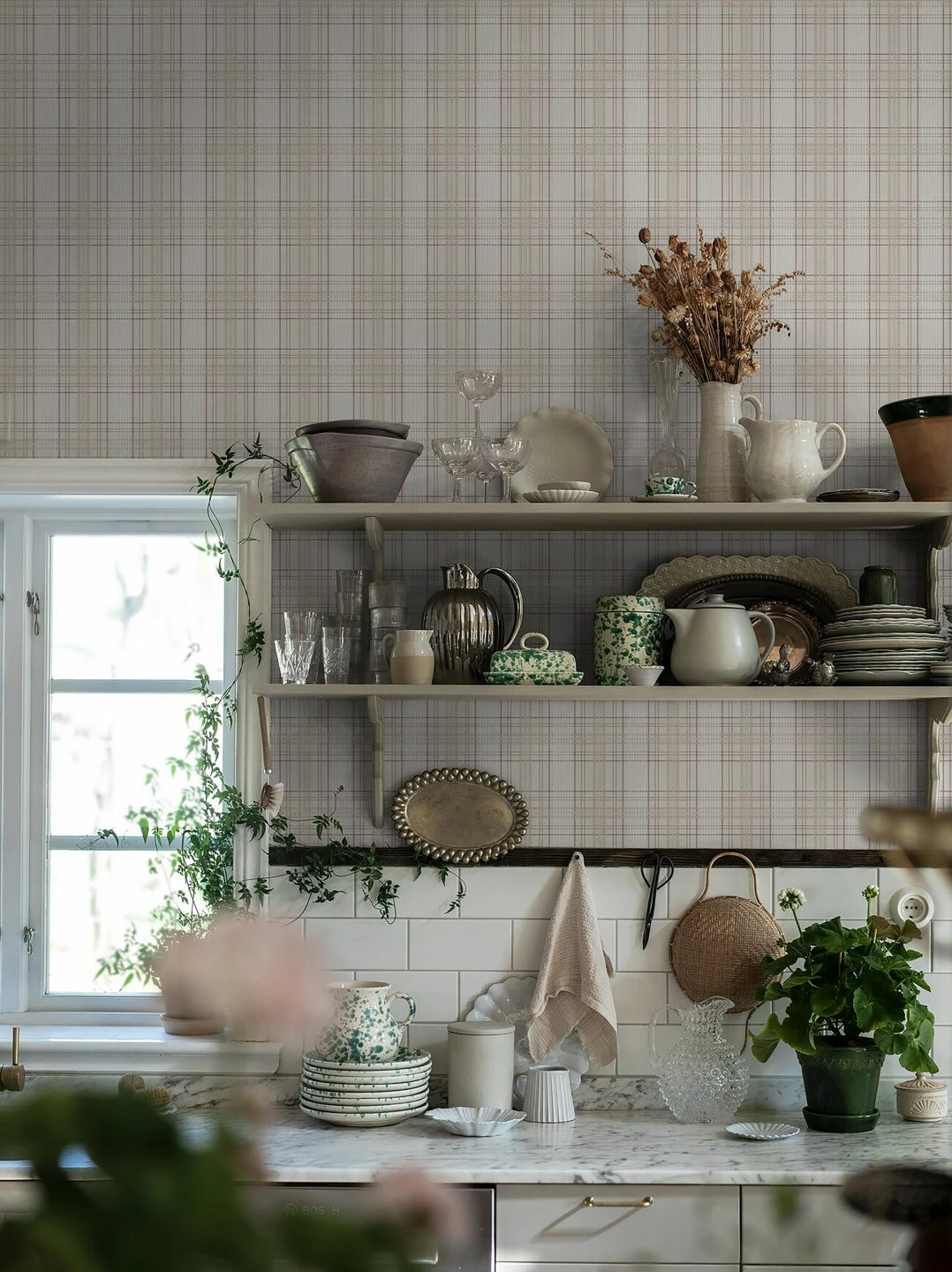Das feine Karomuster der Tapete Malte vereint unverstellte Bodenständigkeit mit freundlicher Leichtigkeit und empfindet in den Details des Aufdrucks einen gewebten Wollstoff nach. Die hellen Grau- und Brauntöne auf dem cremefarbenen Grund lassen alle Ecken und Winkel Ihres Raumes freundlich und lichtdurchflutet wirken. Kombinationen mit allen natürlichen Holztönen unterstreichen die Wirkung dieser aparten Tapete.