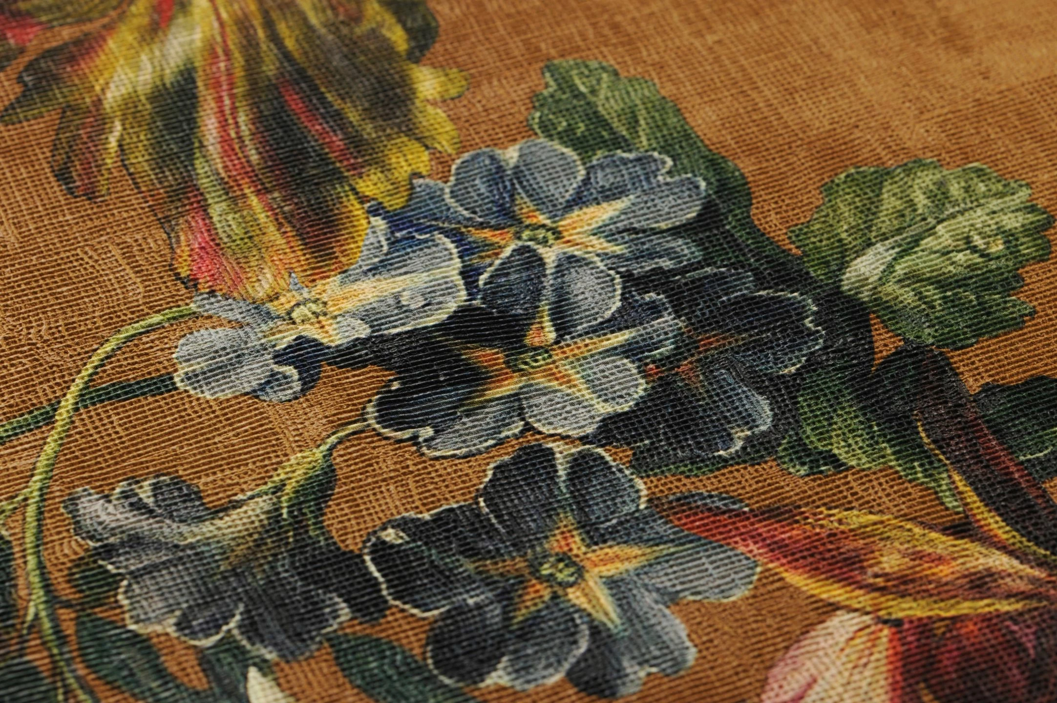 Auf dem kräftig leuchtenden, ockerfarbenen Grund schmücken meisterhaft gemalte Vögel, Blumen, Blätter und Schmetterlinge Ihren Raum. Durch die textilähnliche Struktur der Vinyloberfläche wirkt „Margarete“ wie ein kostbares Gemälde. Gleichzeitig macht das Vinyl die farbenprächtige Vliestapete hoch waschbeständig. So können Sie jeden beliebigen Raum damit verschönern und zu einer Besonderheit machen – sogar Ihr Badezimmer.