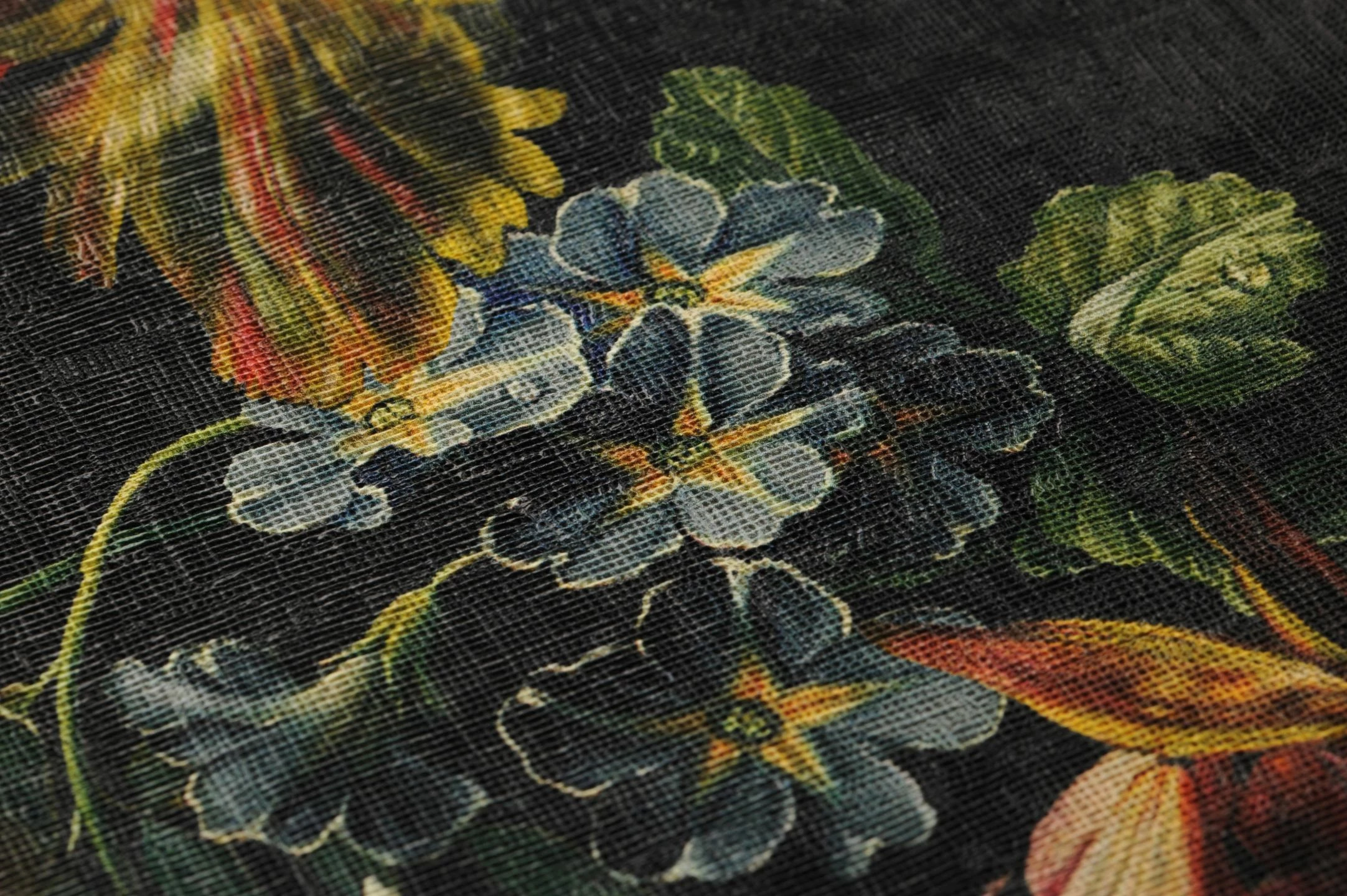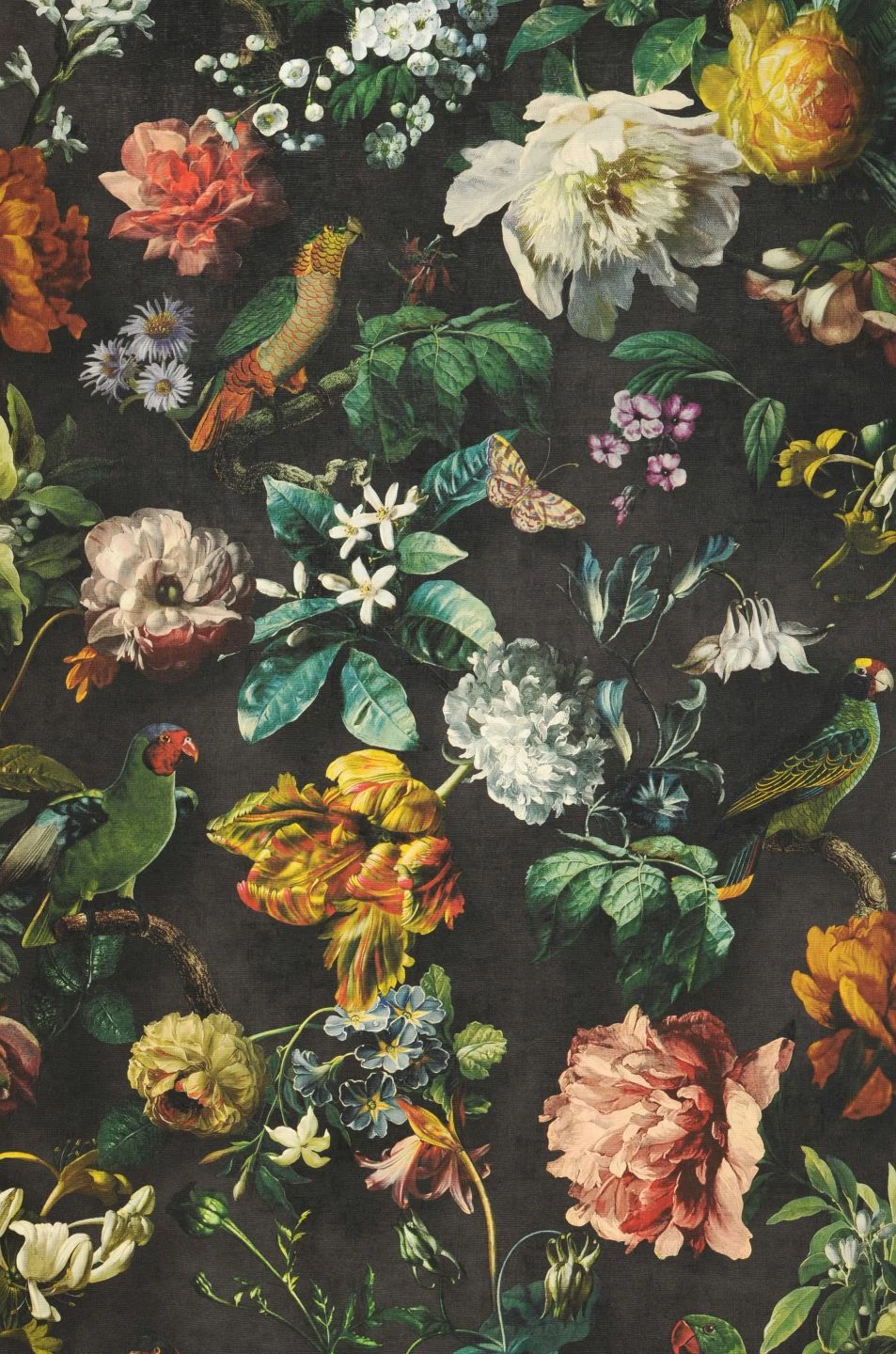 Die Blumen, Blätter, Schmetterlinge und Papageien in leuchtenden Farben auf dem dunklen schwarzgrauen Grund erinnern an das wertvolle Gemälde eines alten Meisters. Kostbar wirken Ihre Wände mit dieser reichhaltig illustrierten Vliestapete. Die Vinyloberfläche, die eine gewebeähnliche Struktur wie die Leinwand eines Malers aufweist, ist hoch waschbeständig, so dass Sie „Margarete“ auch im Badezimmer wirkungsvoll einsetzen können.