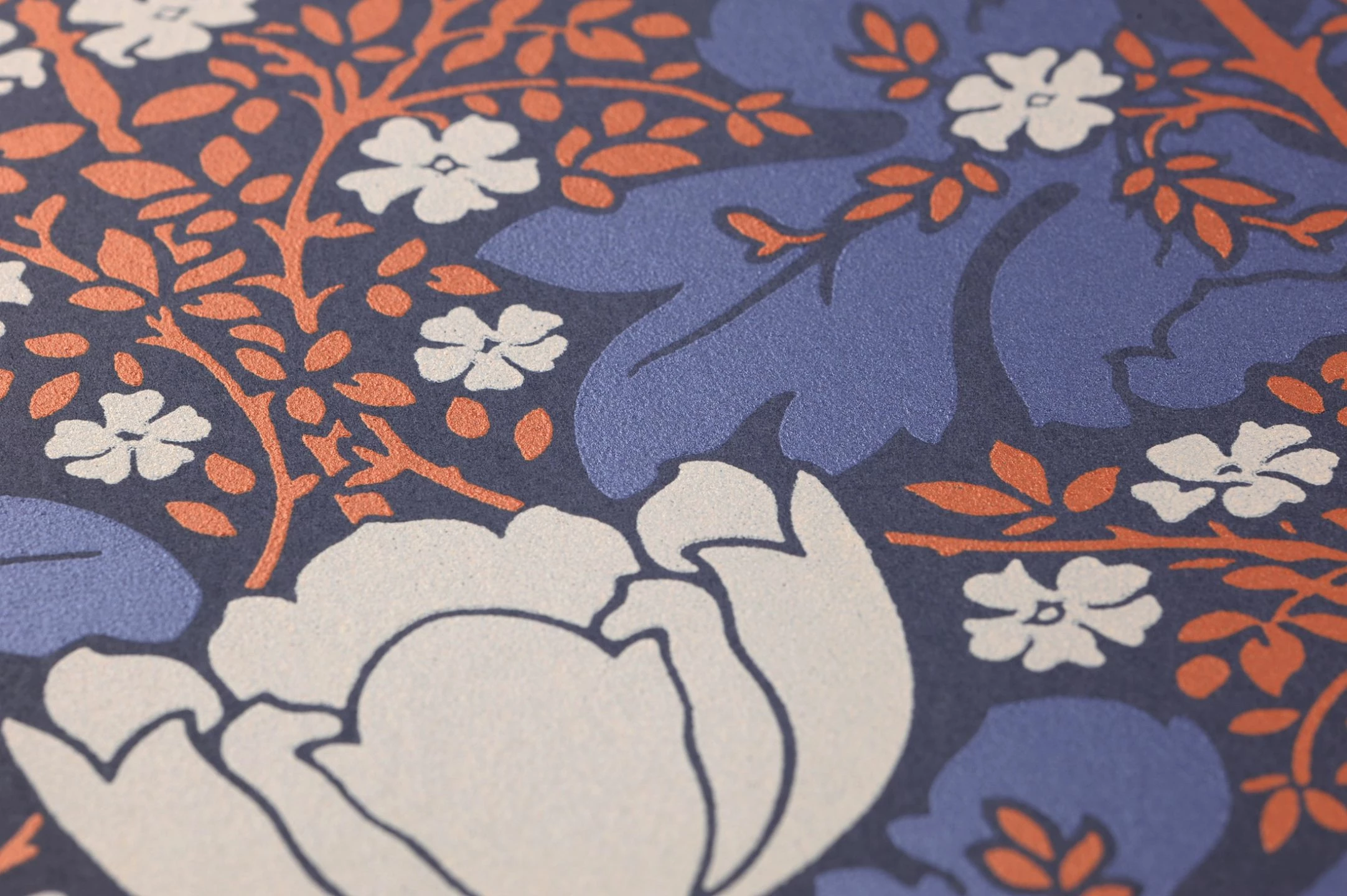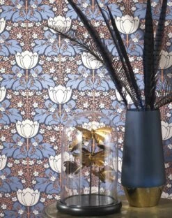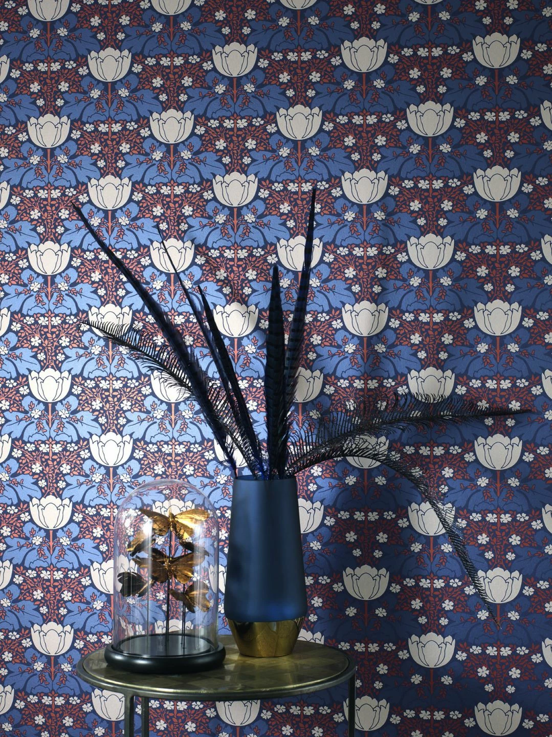 Florale Jugendstilornamente bilden in Verbindung mit der spannenden Farbgebung in Stahlblau, Perlblau, Seidengrau und Perlkupfer das richtige Tapeten-Ambiente für mondäne Raumgestaltungen. Das schimmernde Muster spielt mit dem Licht und offenbart blumige Details. Natur und Kunst verschmelzen zu einer faszinierenden Einheit.