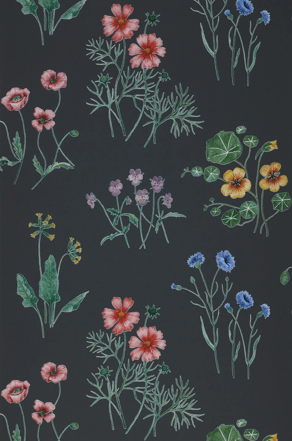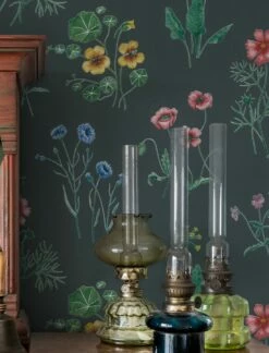 Ein Garten voller Blumen wächst mit dieser floralen Vliestapete an Ihren Wänden. Vertraute Gartenblumen wie Kapuzinerkresse, Mohn, Veilchen und Schlüsselblumen bringen den Sommer mit sich. Das Graphitgrau des Untergrunds lässt die Farben ihrer Blüten besonders leuchten und gibt der Darstellung Halt. „Melodie“ verzaubert jedes Zimmer mit ihrer Blütenpracht – egal, ob Sie sie im Wohnzimmer, in der Küche oder im Schlafzimmer einsetzen.