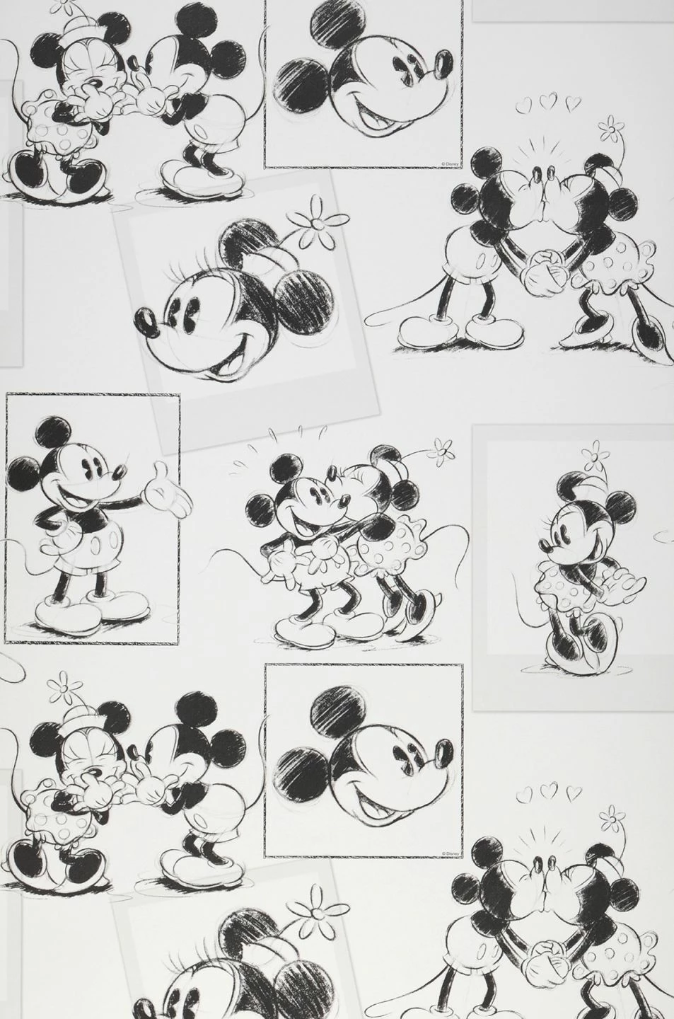 Bilder aus der Welt von Walt Disneys Mickey Mouse – der ersten und berühmtesten Zeichentrick- und Comicfigur aus dem Hause Disney – machen die Tapete zu einem echten Hingucker. Ganz wie Bleistiftskizzen in Schwarzweiß gehalten, beleben sie Ihre Wände mit dem unverwechselbaren Helden unzähliger Filme und Geschichten. Das schwarzweiße Design verträgt Einrichtungselemente, die entweder diese Farben aufgreifen oder mit kräftig-bunten Tönen Kontrapunkte setzen.
