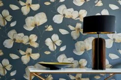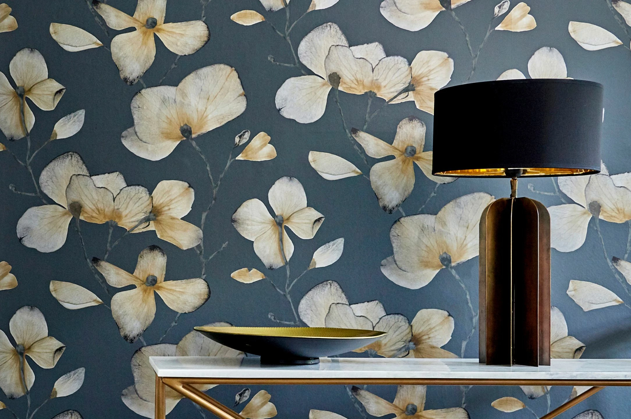 Prachtvolle große Blüten in schimmerndem Perlbeige und Olivbraun scheinen schwerelos an ihren Zweigen zu schweben. Der anthrazitgraue Hintergrund lässt ihre hellen Farben besonders leuchten, so wie am Abend die Farben von Blumen noch einmal eine besondere Strahlkraft entwickeln. Die Vliestapete macht Ihr Wohnzimmer oder Ihr Schlafzimmer zu einer romantischen und gleichzeitig eleganten Oase der Ruhe.