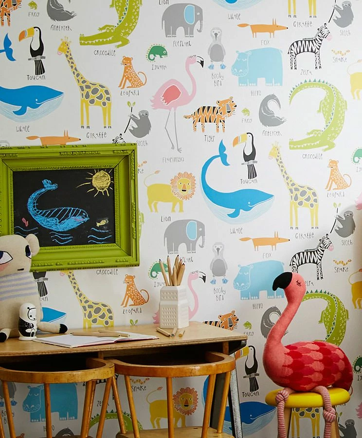 Tiere aus der ganzen Welt ziehen mit dieser einfühlsam gestalteten Papiertapete in das Zimmer Ihres Kindes ein. Auf dem cremeweißen Grund bringen die kindgerechten Zeichnungen die ganze Vielfalt der Natur mit und regen die kindliche Phantasie spielerisch an. Wie in einem Bilderbuch sind die Illustrationen klar und unkompliziert. Vielseitig kombinierbar, sorgt der Wandschmuck für beste Stimmung im Kinderzimmer.