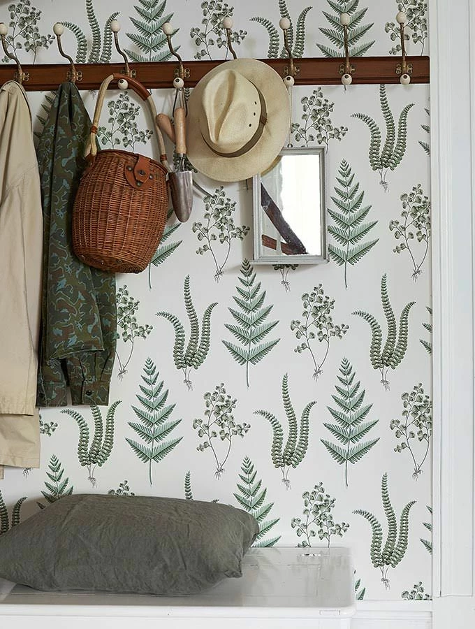 Farne mit ihren vielfältigen, filigranen Blattformen sind die Stars dieser Vliestapete. Auf dem cremeweißen Grund sind naturgetreu und detailliert verschiedene Farnarten abgebildet. Die verschiedenen Grüntöne ihrer Blätter zeigen wie die Abbildungen in einem botanischen Lehrbuch die verblüffende Feingliedrigkeit der Pflanzen und setzen der Formenvielfalt einen gemeinsamen Farbraum als verbindendes Element entgegen, der besonders Holztöne und Naturmaterialien perfekt ergänzt.