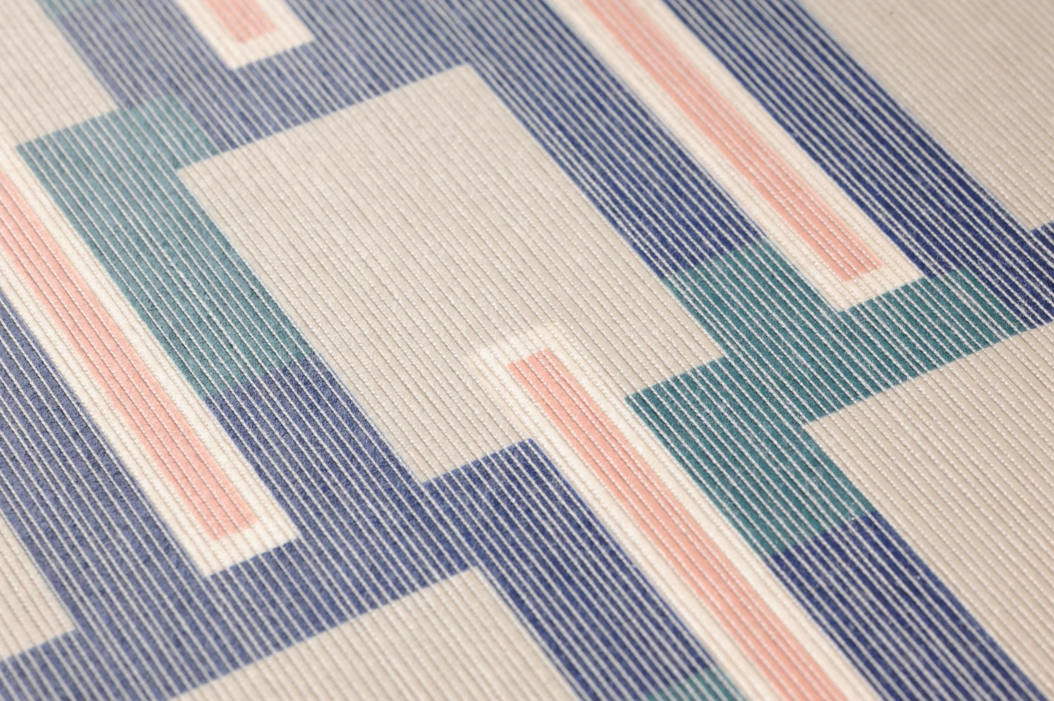 Eine Textiltapete voller Charakter und Ausdruck ist Nebulo mit ihrem graphischen Muster und den echten Kettfäden, die auf den Untergrund kaschiert wurden. Ein kantiges, geradliniges Muster in kräftigem Stahlblau und Kieferngrün sowie hellem Rosa auf cremefarbenem Grund beherrscht das Design. Echte Kettfäden in leicht schimmerndem Weiß geben dieser Vliestapete eine reizvolle Haptik und das gewisse Etwas, das über das Alltägliche hinausgeht.