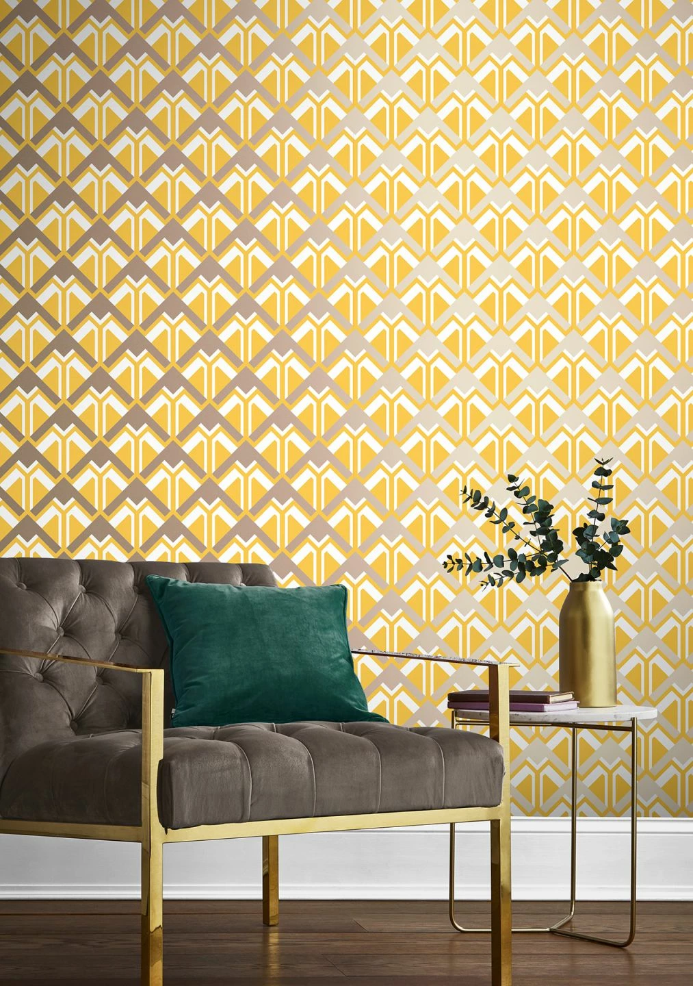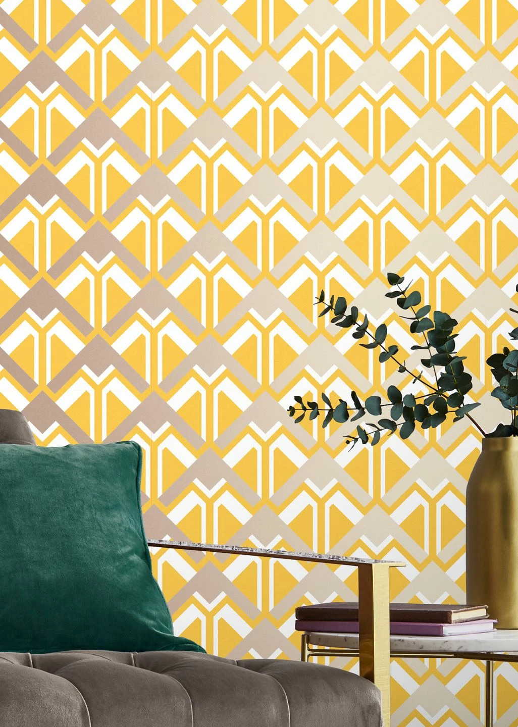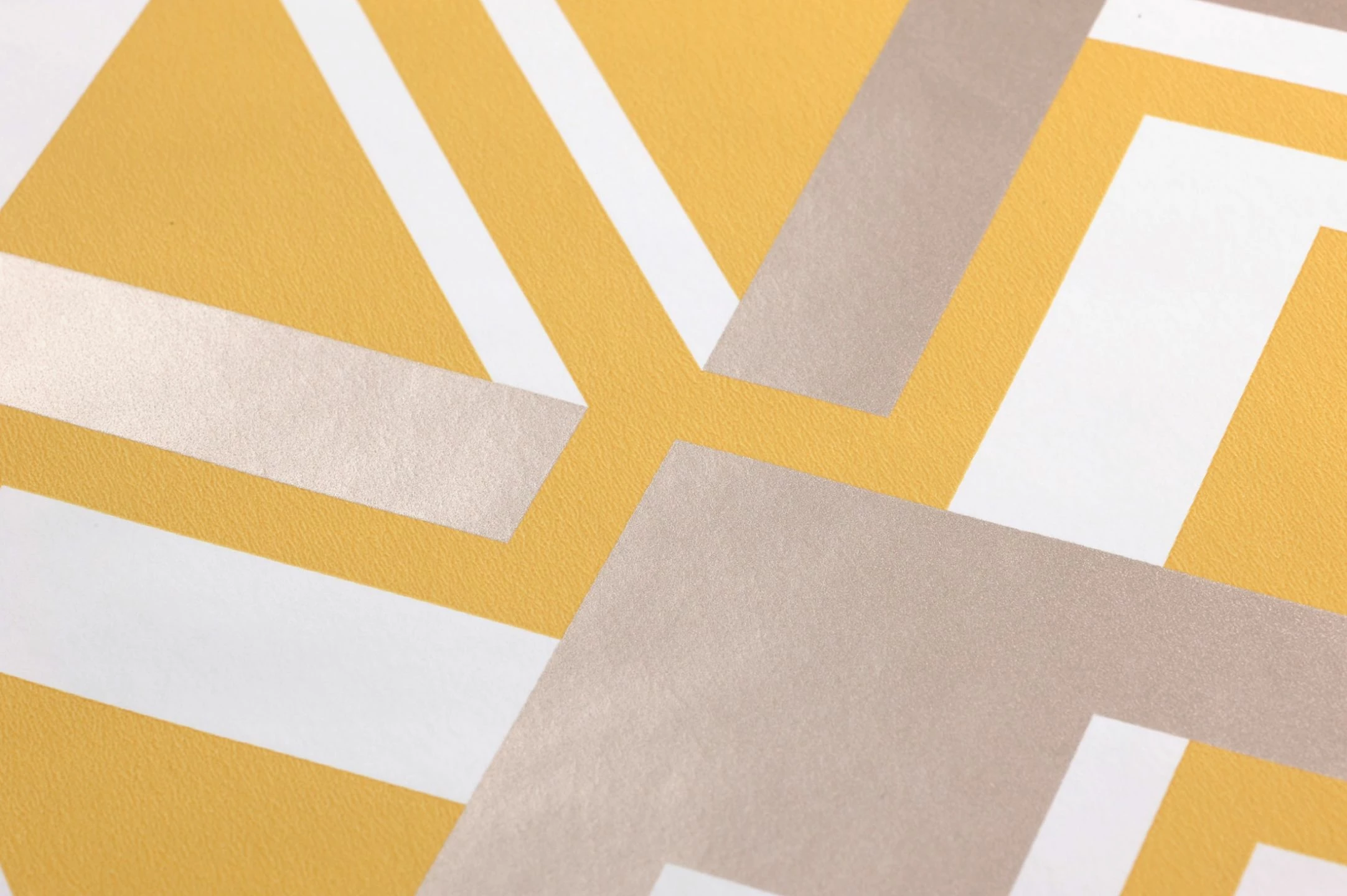 Die Explosion der sonnigen Freude strahlt von Grafiktapete Nerea aus, die mustergültig Weiß und kraftvolles Honiggelb auf Beige schimmerndem Untergrund in die dritte Dimension befördert. Wohnraum, Flur und Treppenhaus verwandeln sich in ein schillerndes Erlebnis. Die waschbeständige Vliestapete wird auch den Reinigungsanforderungen in diesen Raumbereichen gerecht.