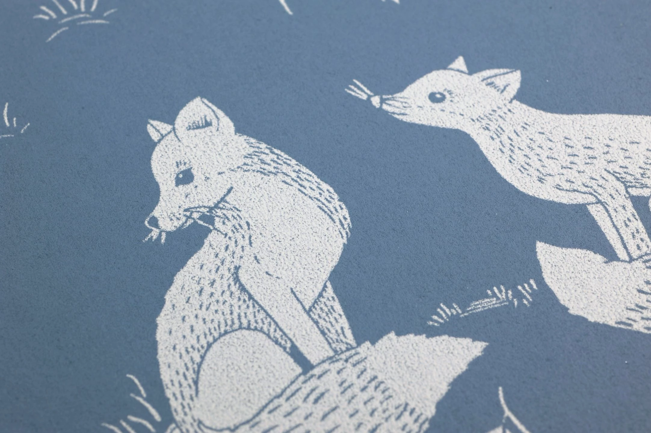 Eine Tapete voller kindlicher Freude an der Natur! Ein Häschen hält eine Blume in der Pfote, ein junger Fuchs hüpft ausgelassen über den Waldboden, ein Singvogel blickt unternehmungslustig in die Welt. Dazwischen Kaninchen, Igel, Bäume, Blätter, Früchte und Pilze. Die verspielten Zeichnungen bekommen Zusammenhalt durch den hellblaugrauen Grund und die grauweiße Musterfarbe. So wirkt die Vliestapete Nils zugleich belebt und ruhig.