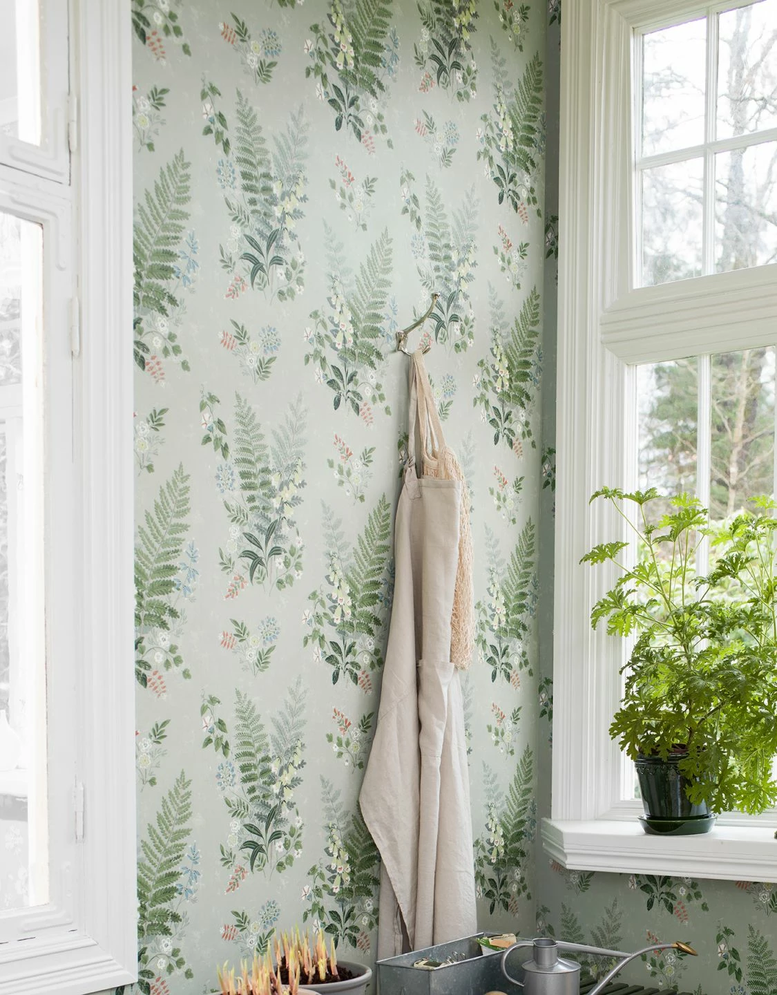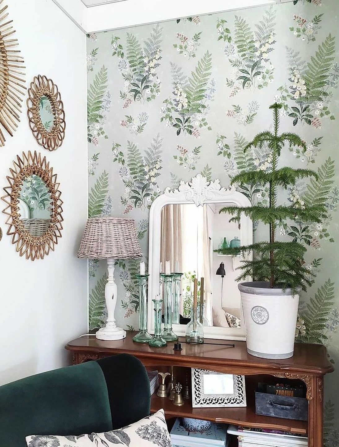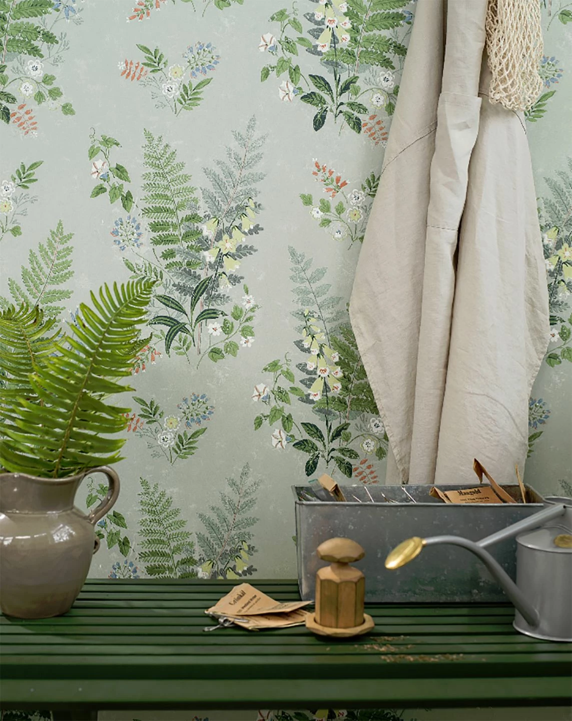 Farne und Waldblumen lassen auf dieser floralen Design Tapete das Herz von Naturfreunden höher schlagen. Sofort sind Feld und Wald präsent, wo tiefe Atemzüge die Lungen mit Energie füllen. Die waschbeständige Vliestapete mit grüner Frische ist stilistisch vielfältig einsetzbar: Romantik, Naturverbundenheit, Landhaus, Oase.