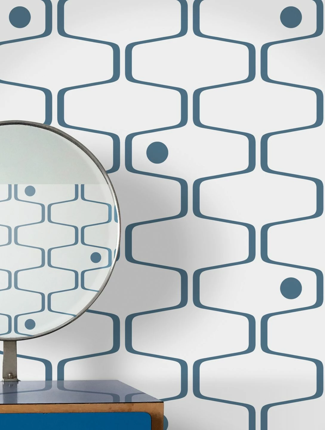 Das fesche Wabenmuster in Dunkelblau auf weißem Grund eignet sich für kesse Vintage-Konzepte ebenso wunderbar wie für den cleanen Scandinavien Look. Die spitzbübischen Punkte sorgen für Abwechslung im Blickfeld und verleihen der abwaschbaren Vliestapete lässige Unbeschwertheit.