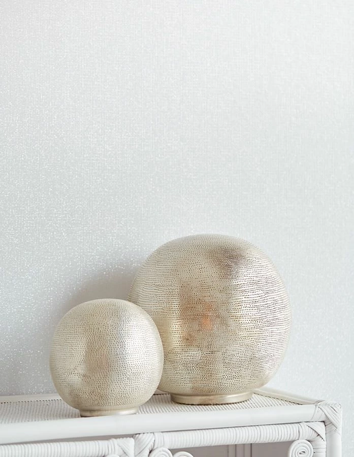 Bei Luxus Tapete Noemi werden Sie zweimal hinschauen, denn sie hüllt den Raum in einen feinen glitzernden Glamour, der sich durch Lichteinwirkung zu einem funkelnden Erlebnis entfaltet. Die Oberfläche der Vliestapete ist mit einer hochwertigen Effektfolie versehen, die das grafische silberglitzernde Muster auf weißem Grund mit eindrucksvollem Hologramm Effekt zeigt.