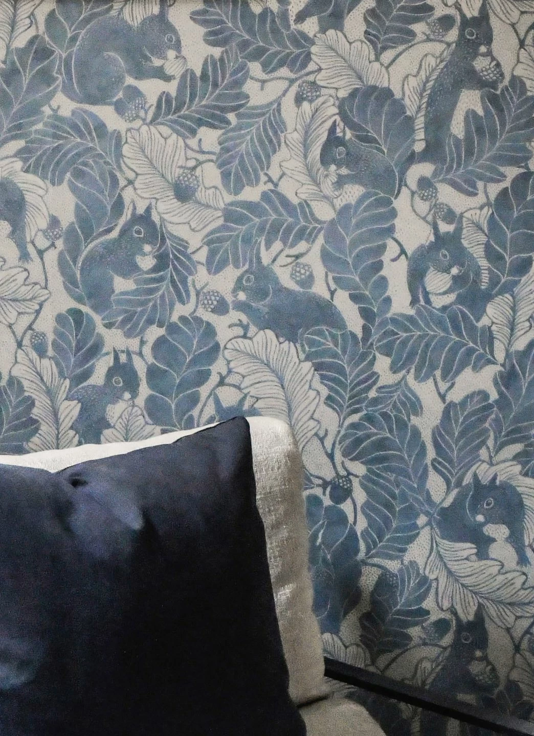 Im dichten Eichenlaub entdecken Sie zauberhafte Eichhörnchen. Wie im echten Wald sind sie bestens getarnt. Oder können Sie auf Anhieb sagen, was ein Eichenblatt, was der buschige Schwanz eines der Eichhörnchen ist? Die wirkungsvolle Vliestapete Oak Tree Tails mit ihrem angenehmen Blauton spielt mit den Formen und Umrissen von Tieren und Pflanzen und erweckt Ihre Wand mit ihrer Formenvielfalt zum Leben.