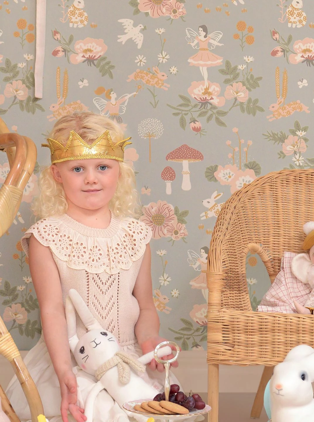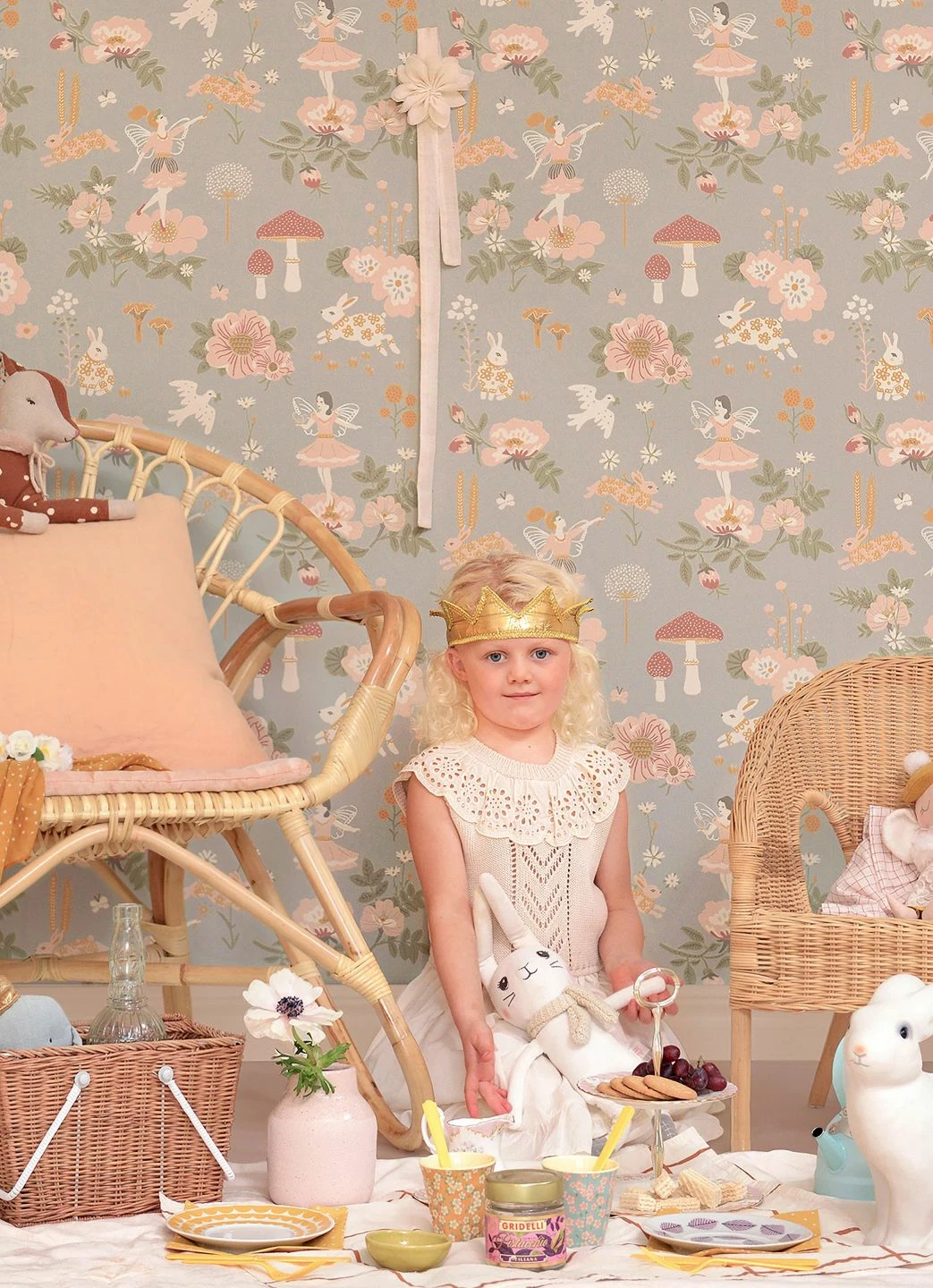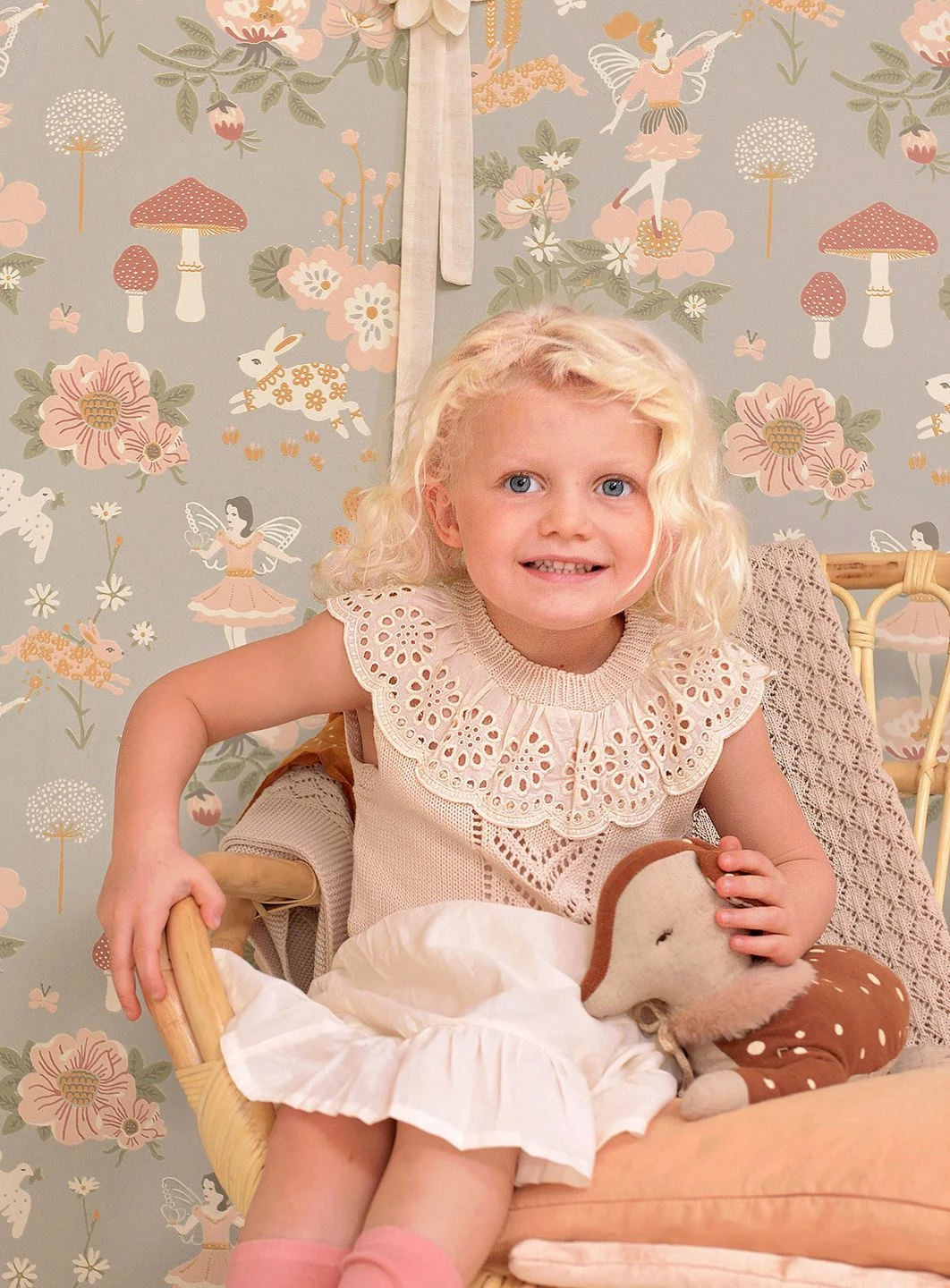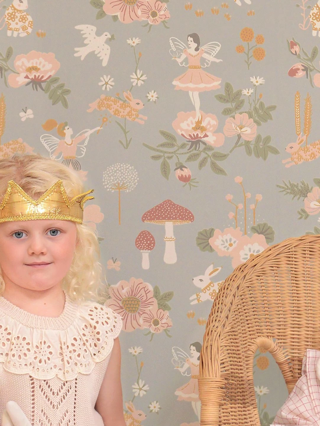 Das Kinderzimmer wird zu einer märchenhaften Welt voller Feen und Tauben, Heckenrosen und Häschen, Schmetterlinge und Pilze mit der zauberhaften Tapete „Old Garden“ aus dem Hause Majvillan. Die Illustrationen sind kindgerecht und zeitlos. Das traditionelle Leimdruckverfahren, mit dem sie auf die Tapete gedruckt wurden, gibt ihnen zusätzlichen Charme. Die Vorstellungskraft Ihres Kindes wird durch die phantasievollen Figuren spielerisch angeregt.