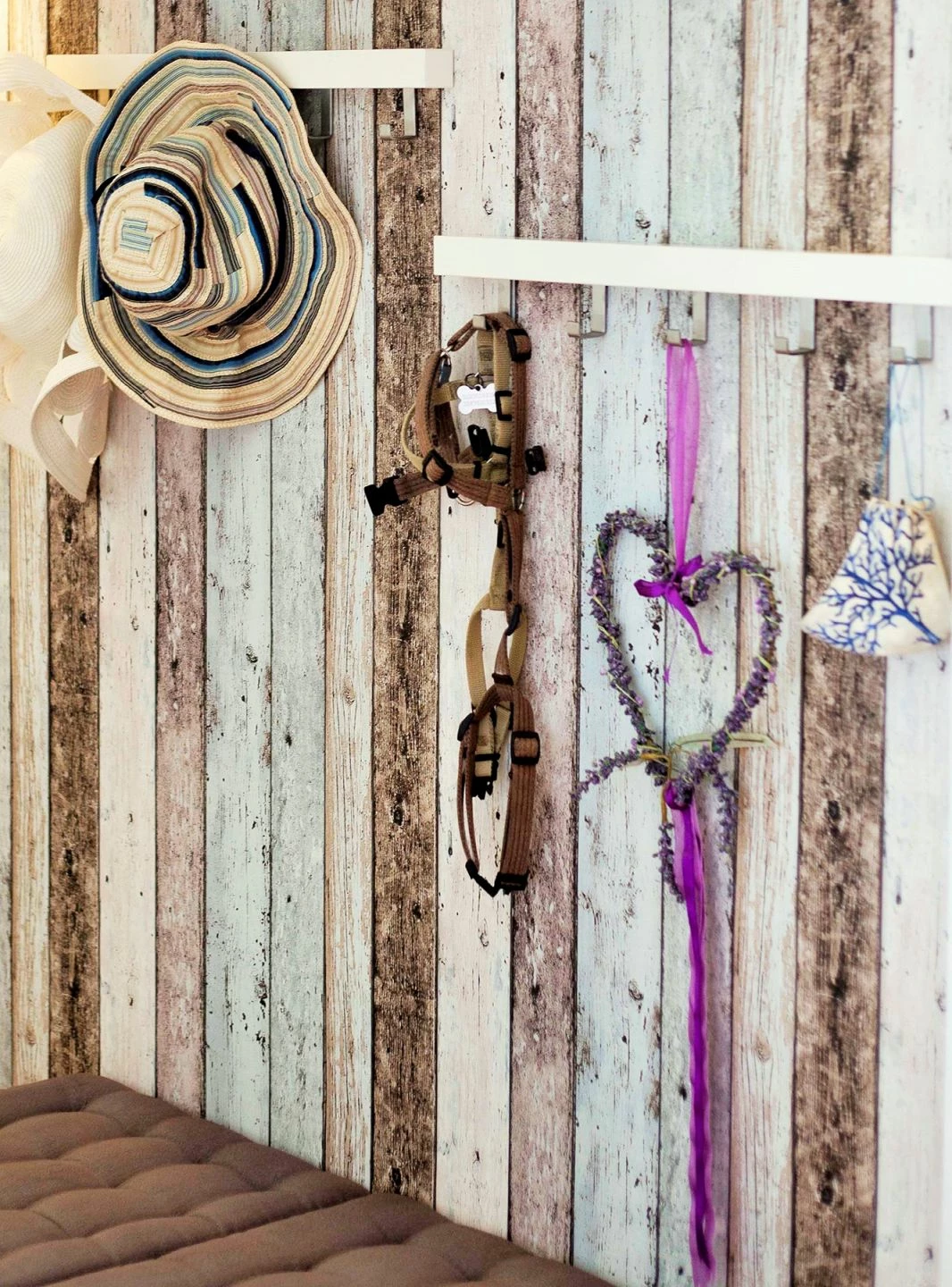 Helle, durch die Einflüsse von Wind und Wetter schon leicht verblasste Braun-, Cremeweiß- und Hellgraublautöne, jeder ein wenig anders, machen den rustikalen Charme der Holzoptik-Tapete aus. Alte Bretter mit Gebrauchsspuren, abblätternde Farbe und Astlöcher, all das ergibt eine ungeheuer lebendige Kulisse für Ihren Raum. Gerade zum Shabby Chic oder ergänzt durch Elemente im maritimen Stil ist „Old Planks“ eine echte Bereicherung – dank der Vinyloberfläche selbst in Ihrem Bad.