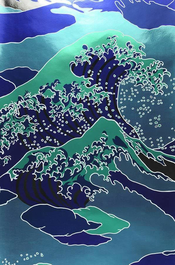 Die wohl berühmteste Darstellung einer Welle, neu interpretiert im Stil der Pop Art: Das Design des New Yorker Herstellers Flavor Paper basiert auf dem japanischen Holzschnitt „Die große Welle vor Kanagawa“. In kraftvollen Grün-, Türkis- und Blautönen greift die Vliestapete die Farben und die Dynamik des Meeres auf. Dabei bleibt die detailgetreue Darstellung der Riesenwelle unverkennbar. Die Mindestabnahmemenge beträgt drei Rollen.
