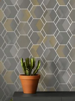 Wie einzelne Sonnenstrahlen, die beginnen, den Morgennebel aufzulösen, spielt die Vliestapete Opalino mit der spannungsvollen Kombination aus sanften, hellen Grautönen und hellgelben Farbverläufen. Das Muster von Hexagonen und Rauten, das aus den Abstufungen der Helligkeit entsteht, scheint dreidimensional und wird durch leicht schimmernde Linien in Perlbeige akzentuiert. Ein schönes Detail ist die dezente Optik geflochtener Bastmatten, die der glatte Grund der Tapete aufweist.
