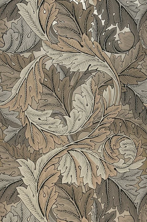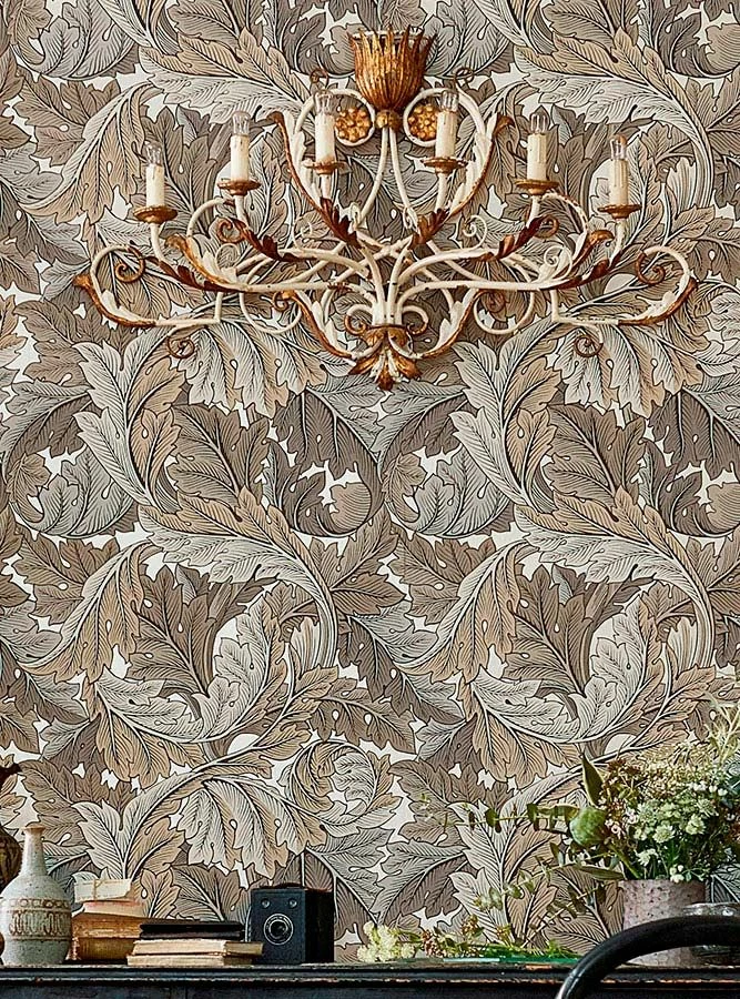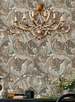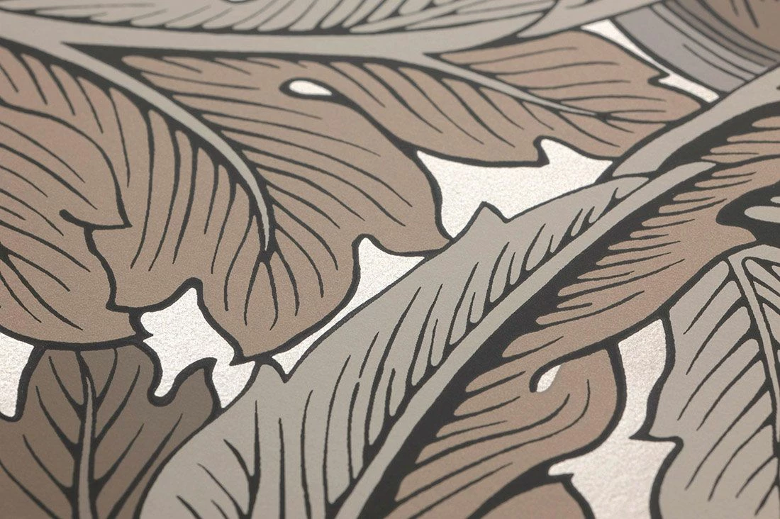 Floraler Barock, der von schlichten und natürlichen Blattornamenten lebt und dennoch eine bewegte Opulenz ausstrahlt – Gegensätze ziehen sich bekanntlich an und Design Tapete Patagonia ist dafür ein musterhaftes Beispiel. Helle bis mittlere Grau- und Brauntöne, hinter denen Perlbeige schimmernd hervorblitzt, unterstreichen die Natürlichkeit.