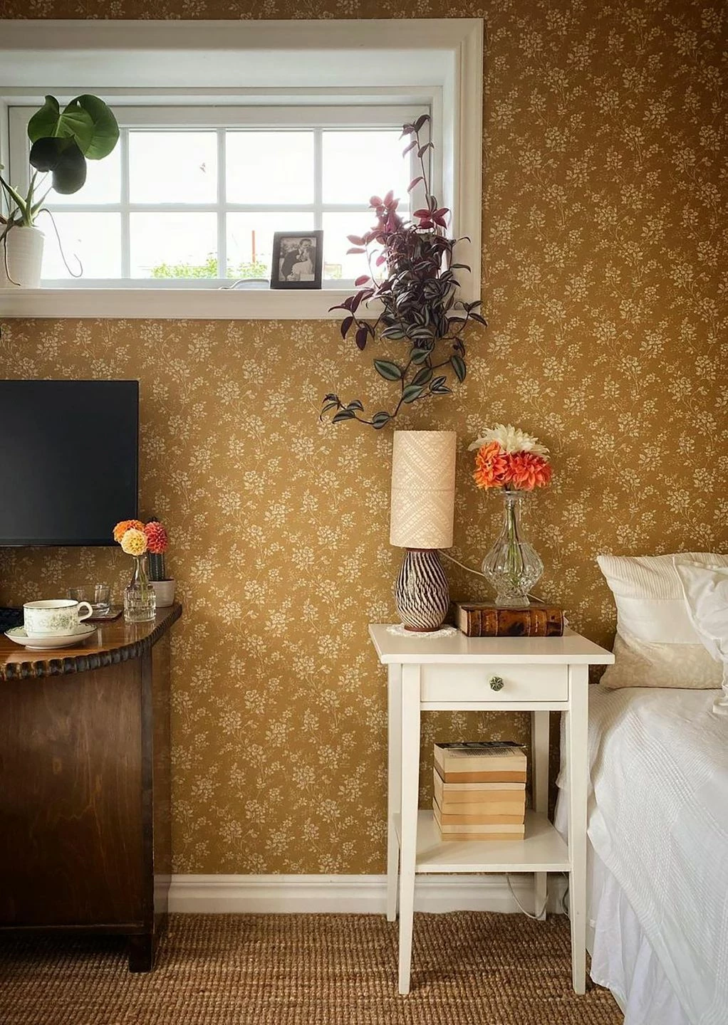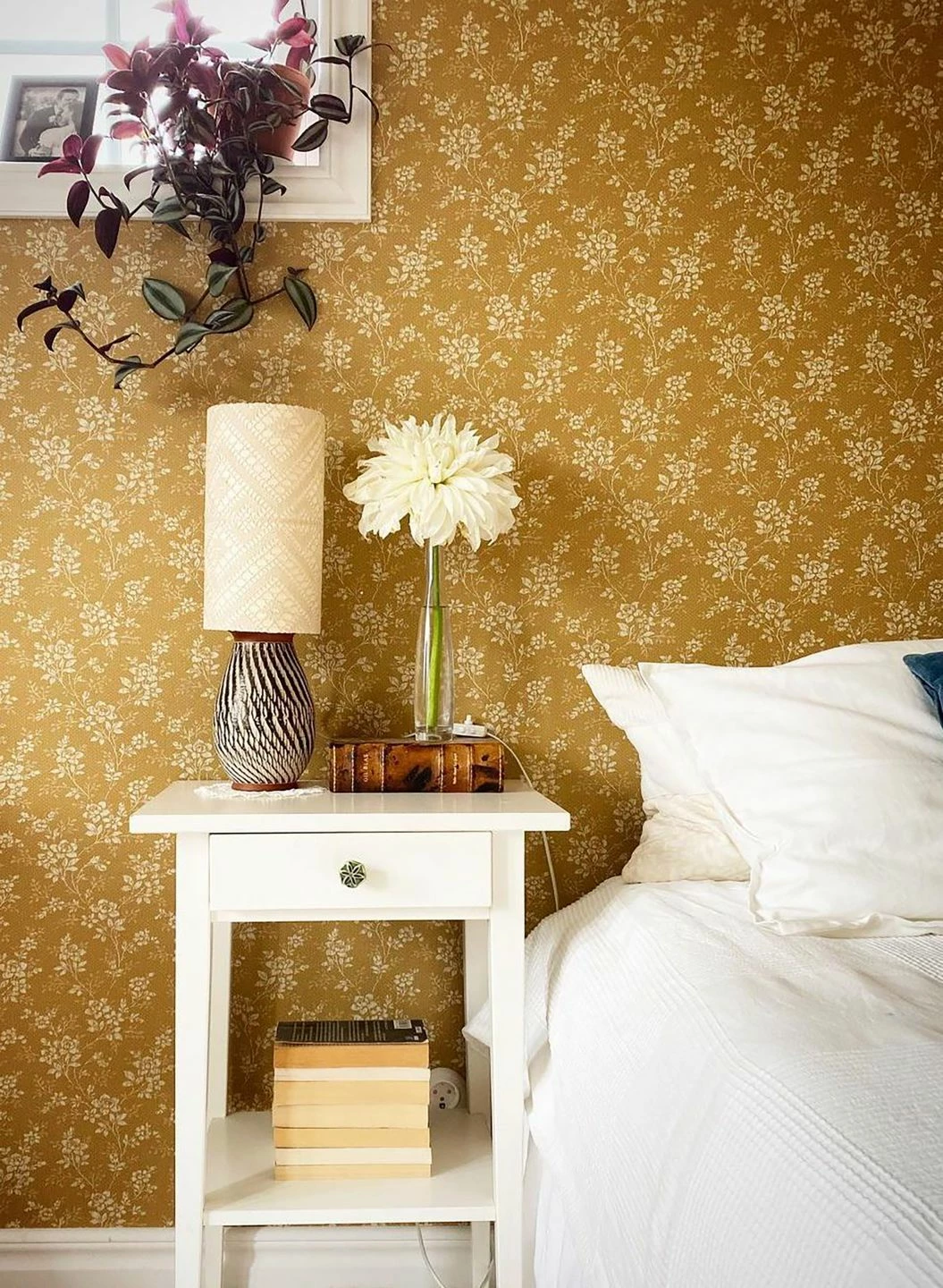 Perfekt zum Landhaus-Stil, aber auch zum skandinavischen Stil oder Shabby Chic passt die Vliestapete Patricia mit ihrem dezenten, freundlichen Blumenmuster. Mit ihrem raffinierten Farbauftrag auf dem ockerfarbenen Grund lassen die cremeweißen Blüten und Blattranken an Holzschnitt- oder Stempeltechnik denken. Zusammen mit den cremeweißen Punkten, die den Grund lebendig machen, strahlen sie gelassene Gemütlichkeit und Gastfreundschaft aus.