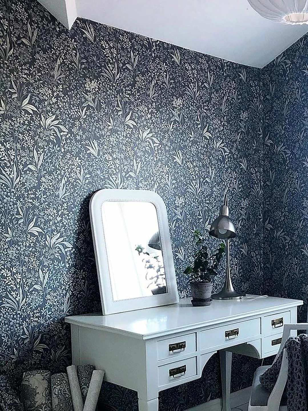 Dass florale Musterelemente an der Wand eindrucksvolle Blüten treiben, wird mit Design Tapete Pilar herrlich deutlich. Grau und Blau geben sich die Farbenehre und zwar in interessantem Wechselspiel, als Muster- und Grundfarbe im Feintuning abgestimmt. In Kombination mit einer hellen oder weißen Einrichtung entsteht ein wirkungsstarkes Kontrastprogramm, das Romantik, Shabby Chic, Country Style gleichermaßen bedient.