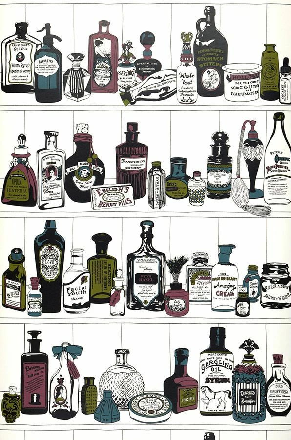 Die kuriose Flaschensammlung mit verspieltem Touch zaubert ein nostalgisches Lebensgefühl in Schlafzimmer oder Bad. Umgeben Sie sich mit pompösen Flakons und jeder Menge Fläschchen für die Schönheit. Die stilvolle Dupenny Design Tapete ist mit einer waschbeständigen Oberfläche ausgestattet und daher auch für den Feuchtraum geeignet.