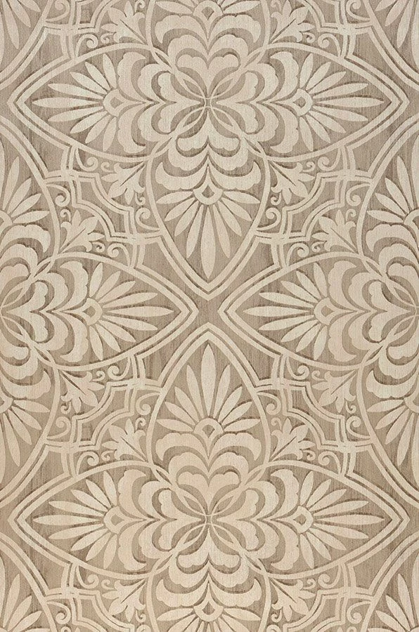 Orientalische Schnitzereien wie sie auf Wandvertäfelungen, Fensterläden und schmückendem Mobiliar zu finden sind, glänzen hier musterhaft und mit fühlbarer Struktur an der Wand. Die natürliche Farbgebung der robusten Vinyl Tapete erlaubt eine Vielzahl an Gestaltungsideen – von Shabby und Vintage Chic bis hin zu puristischen Asia-Styles.