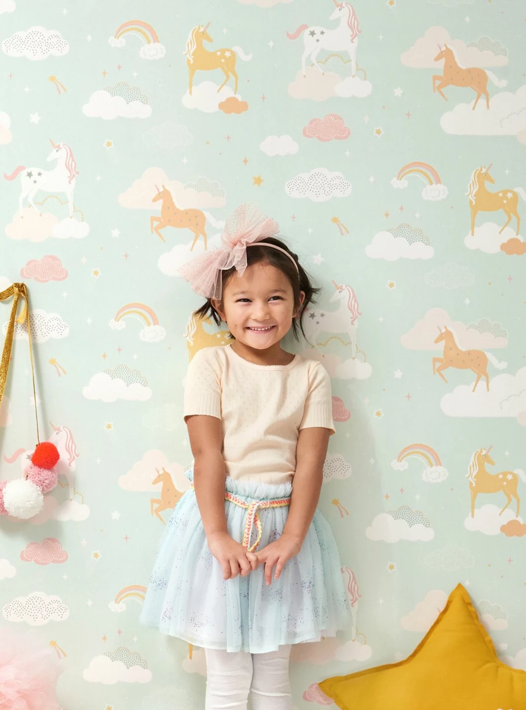 Eine phantastische Welt, in der es Einhörner gibt und man zwischen den Sternen auf Wolken stehen kann – die liebevoll gestaltete Kindertapete aus dem Hause Majvillan nimmt die kindliche Kreativität ernst. Helle, freundliche Pastelltöne schaffen eine Atmosphäre von Geborgenheit und Wärme. Die Vliestapete wurde im Leimdruckverfahren hergestellt, was ihr einen besonderen, fast handgefertigten Charakter gibt.