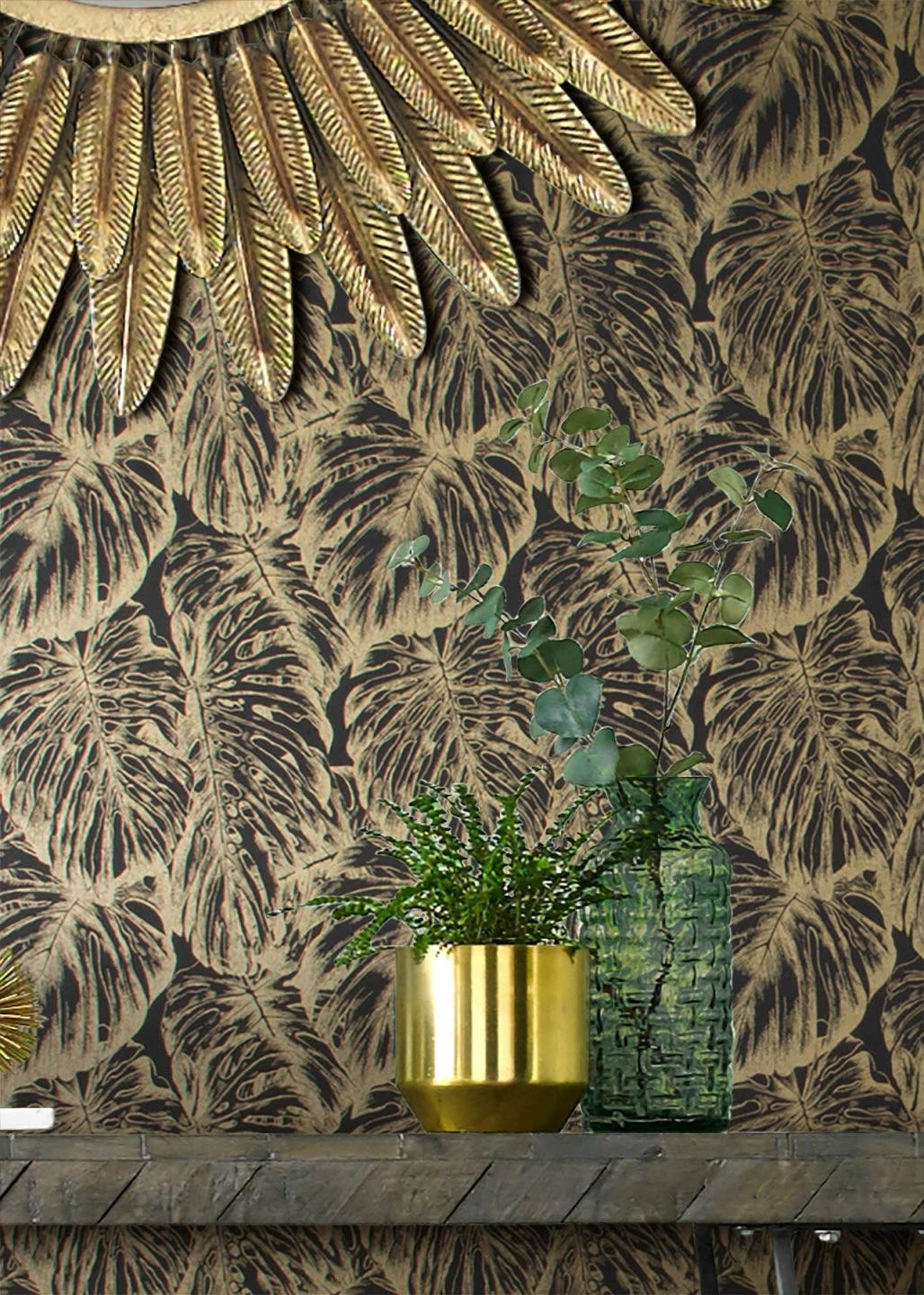 Raisa erinnert an den Namen einer indischen Göttin und so wird die prächtige Luxustapete ihrem Namen auch wunderbar gerecht. Das opulente Blattwerk, dessen Silhouette bis in die feinsten Adern von Gold durchzogen ist, bedient den eleganten Geschmack mit bewusstem Hang zur Dekadenz. Der anthrazitfarbene Grund stärkt die glamouröse Fülle.