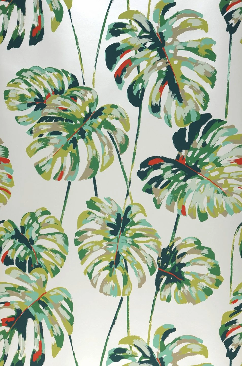 Prächtiges Grün gedeiht nicht nur in der Natur, sondern auch auf diesem floralen Musterstück. Die exotischen Blätter im Multicolor-Design auf weißem Fond wollen optisch bewusst in den Raum wachsen und eine dichte grüne Wohlfühloase bilden. Die waschbeständige Vliestapete mit glatter Oberfläche besticht auch durch ihr künstlerisch plakatives Design.