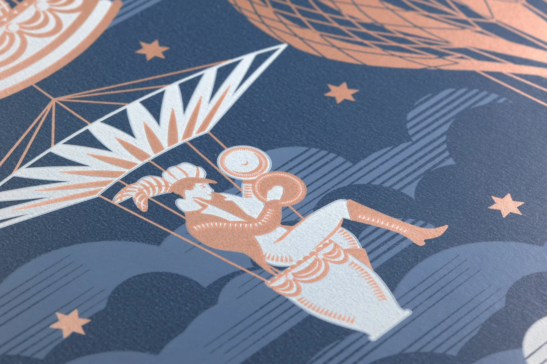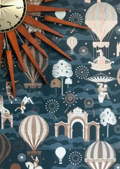 Exakte Geometrie und ein Mustermotiv, das unbeschwerter nicht sein kann. Die romantische Tapete mit Zirkusmotiven lädt Kinder wie auch Erwachsene zum Träumen ein. Der dunkelblaue Fond in Verbindung mit Taubenblau und Rosenholz unterstreicht den zauberhaften Charakter dieser fantasievollen Vliestapete.