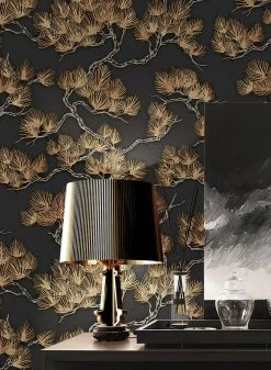 Eine Tapete wie eine handgearbeitete Stickerei: In die Vinyloberfläche ist das Motiv wie feine, fühlbare Stickstiche eingeprägt. Knorrige Pinienzweige mit langen, schlanken Nadeln in Perlbeige und leicht schimmerndem Ockerbraun scheinen auf dem anthrazitfarbenen Grund wie von selbst zu leuchten. Die hübsche Tapete ist eine Hommage an die japanische Kunst. Mit asiatischen Elementen in Ihrer Einrichtung betonen Sie die Anklänge an die Kultur des Fernen Ostens.