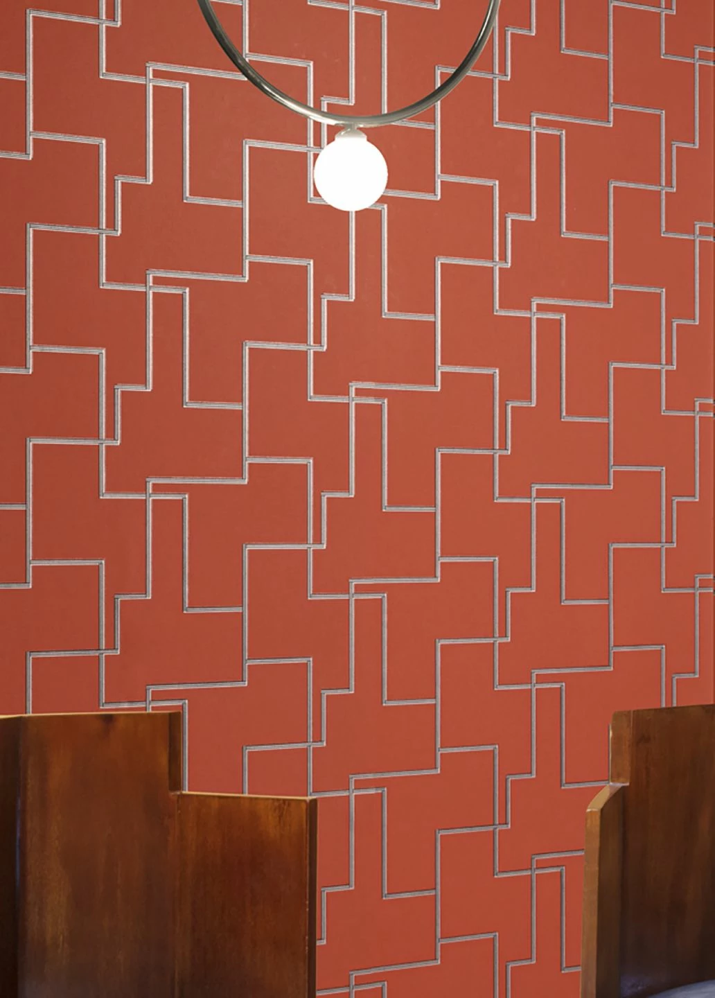 Leuchtendes Kupferbraun bildet den Hintergrund für ein faszinierendes, grafisches Labyrinth. Silber Schimmer und Schwarz weisen entsprechend der Lichteinstrahlung den Weg für das Auge und lassen den Blick ganz zufällig haften. Mit der hochwertigen Vliestapete können Sie Modern Art Feeling in favorisierte Räume zaubern.