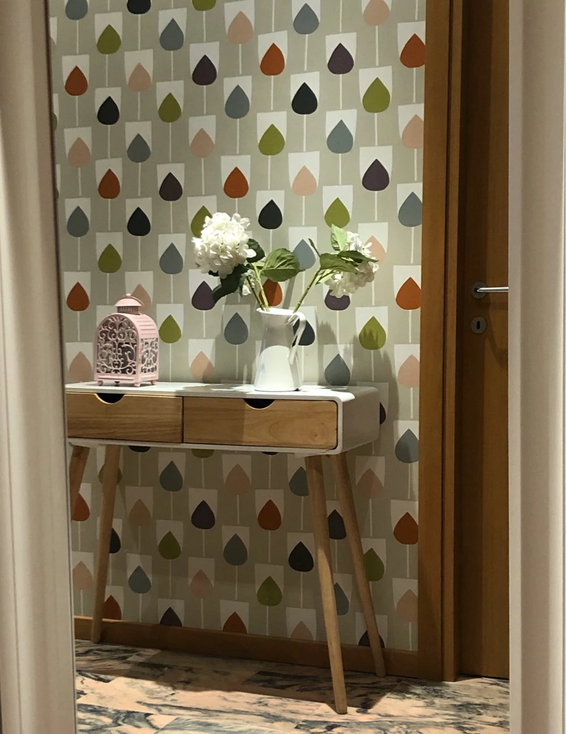 Die immer wiederkehrenden gefüllten Tulpenkelche wirken durch die gedeckten Farben natürlich und holen den Frühling in Ihr Zuhause. Ein Muss für eine moderne Raumgestaltung.
