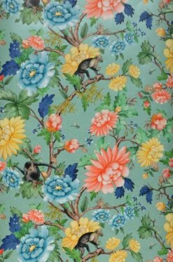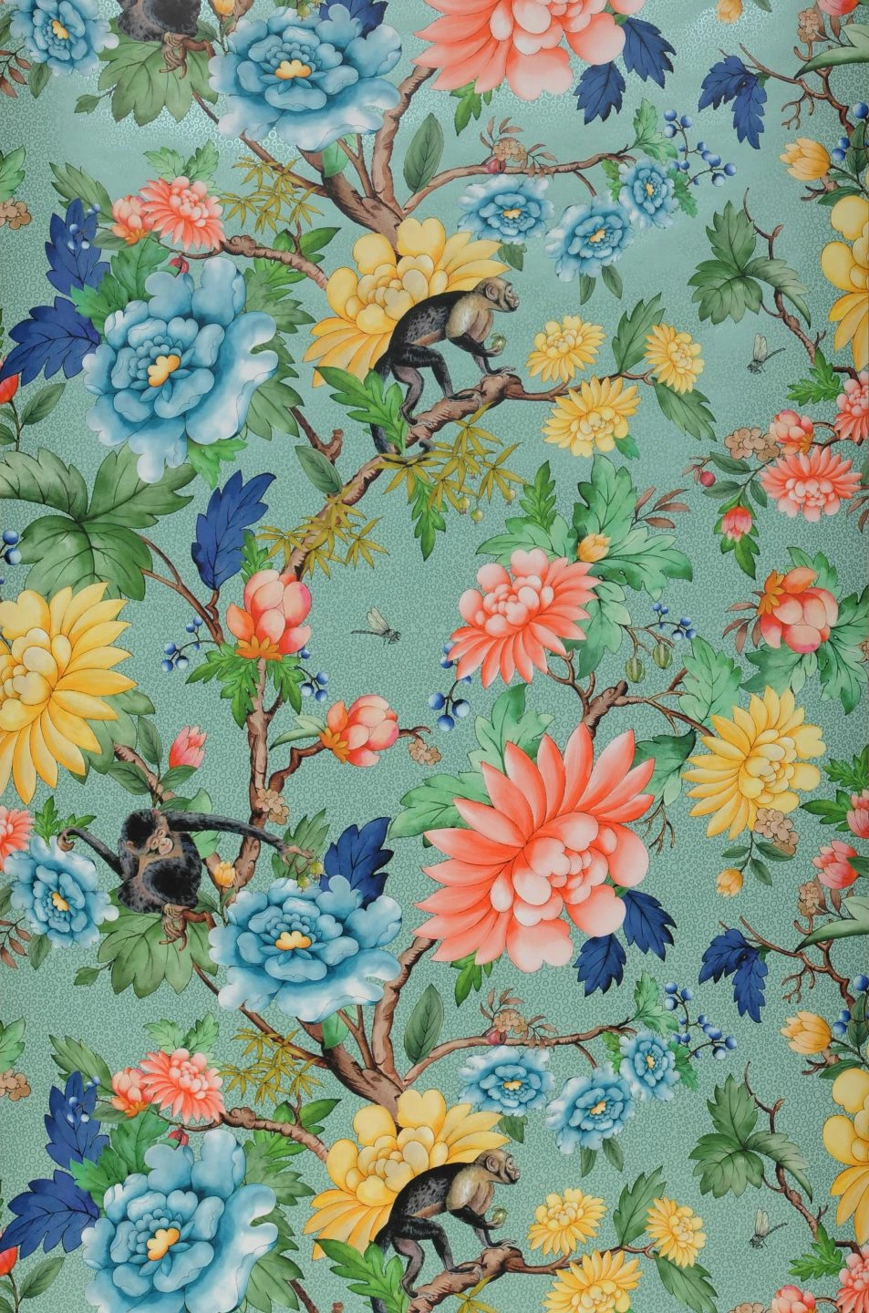 Eine Blumentapete voll von üppigem Leben zieht mit Savana bei Ihnen ein. Ungeheuer dynamisch erscheinen die Blüten in hellen Farben mit ihren verschiedenen Größen, so als wären sie innerhalb weniger Sekunden aus den Zweigen gewachsen. Die Affen auf den Blütenzweigen wirken geradezu klein gegen die ausladenden Blumen. Eine turbulente, farbenfrohe Kulisse für einen Raum, der Ihnen Kraft und Energie spendet.