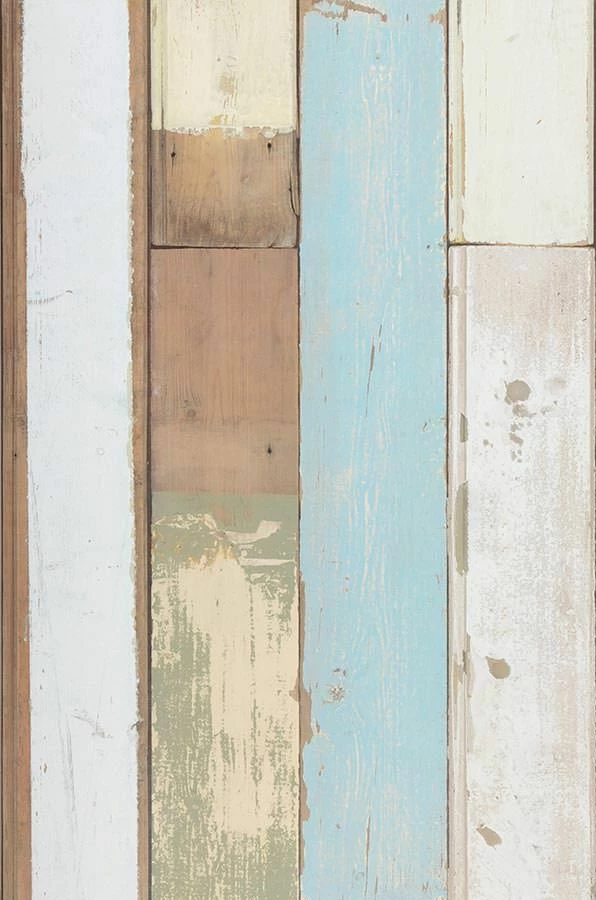 Die Holz-Imitation dieser Digitaldruck-Tapete lebt von den verschiedenen hellen Farben der Holzbretter, die wirken, als hätte man sie kreativ recycelt und daraus eine neue Wand gezimmert. Bretter in Grauweiß, Hellblau, Grauoliv und Blauweiß, dazwischen Bereiche, in denen der natürliche Farbton des Holzes dominiert, ergeben ein charmantes, unbeschwertes Gesamtbild, in dem sich kein Bereich des Musters wiederholt. Mit hellen Farbtönen ergänzen Sie die Tapete zu einem gut gelaunten Shabby Chic.