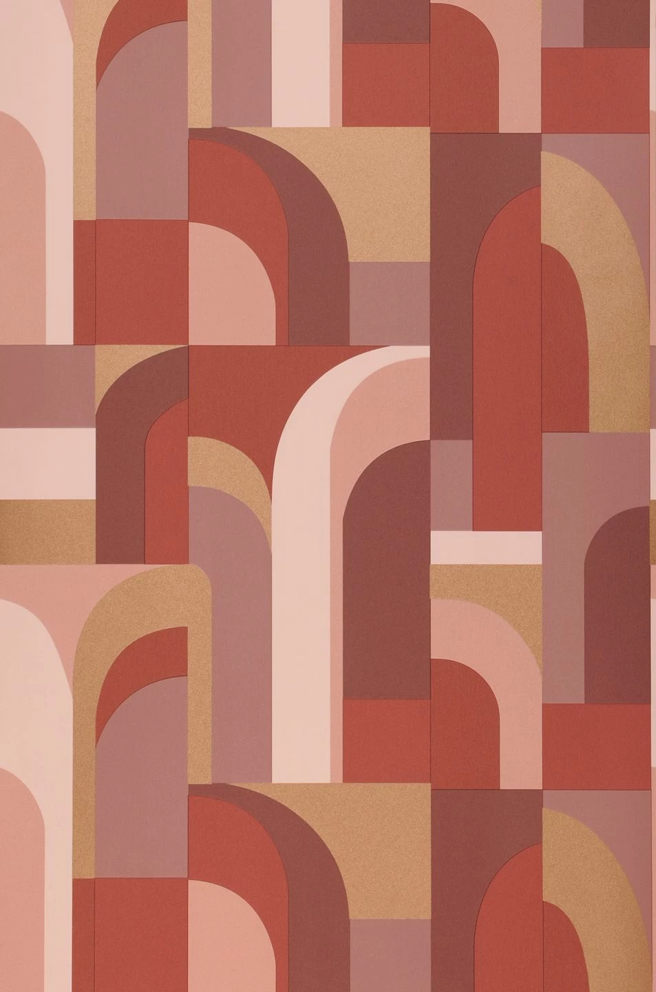 Warme Braun- und Rosatöne bestimmen den Charakter dieser Art-Deco-Tapete. Die Farben bilden flächige Bögen im Stil des Art Deco. Dazwischen sorgt Perlgold für harmonische Lichtreflexe. Die warme Farbgebung lässt sich mit dunklem oder hellem Holz kombinieren. Aufgrund der unempfindlichen Oberfläche aus Vinyl schmückt die Tapete ein Badezimmer ebenso wie eine wohnliche Küche oder ein gemütliches Kaminzimmer.