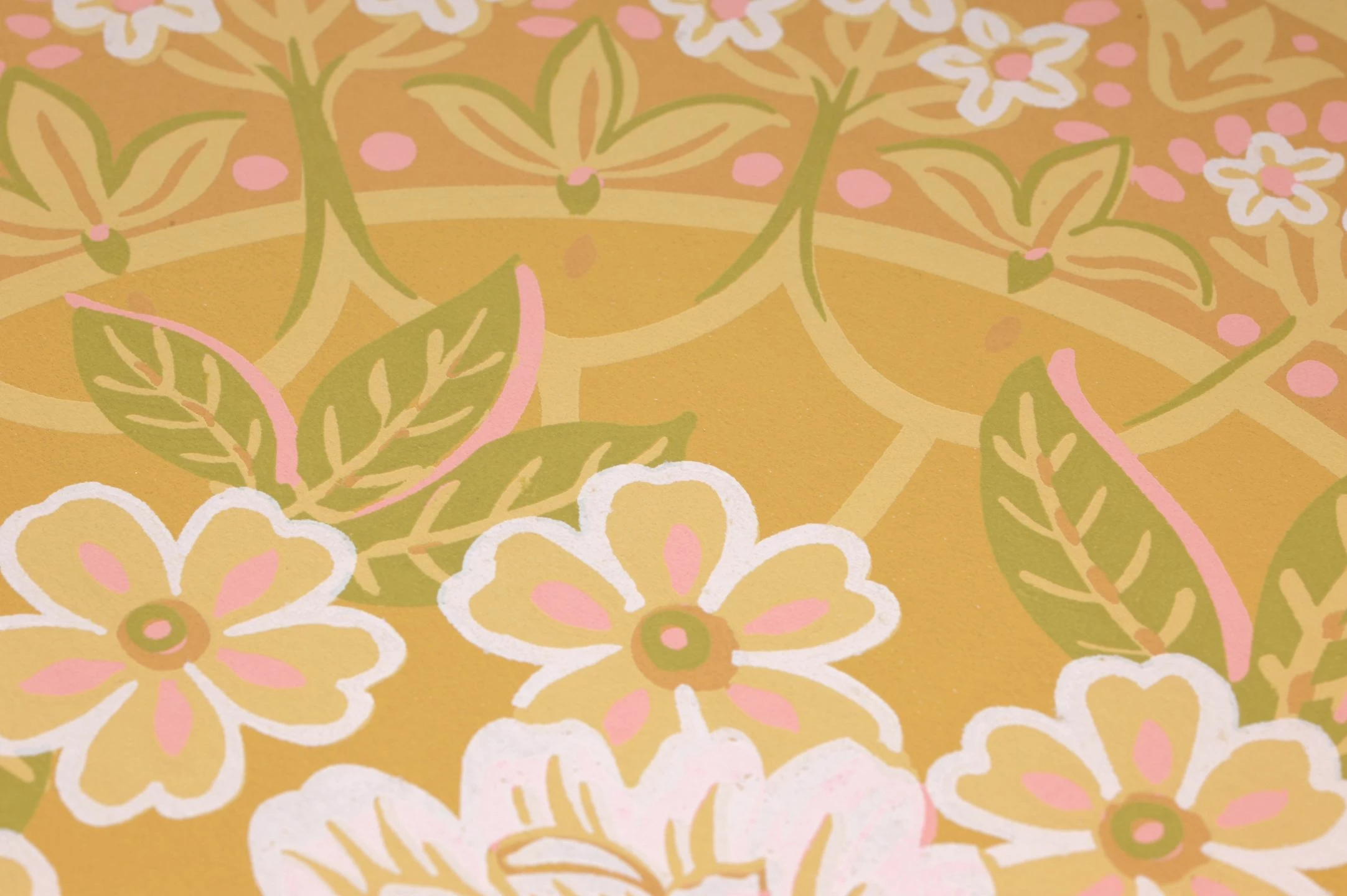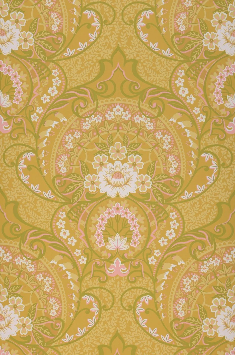 Die Wärme des Sonnenscheins ist in den Farben dieser klassischen Tapete eingefangen. Die in Bögen und schwungvollen Girlanden angeordneten Ornamente aus Blüten, Blättern und Ranken in hellen Beige-, Grün- und Rosatönen scheinen im Sonnenlicht geradezu aufzublühen. Die harmonische Farbzusammenstellung betont und verstärkt das Licht in Ihren vier Wänden und strahlt positive Energie und Lebenskraft aus.