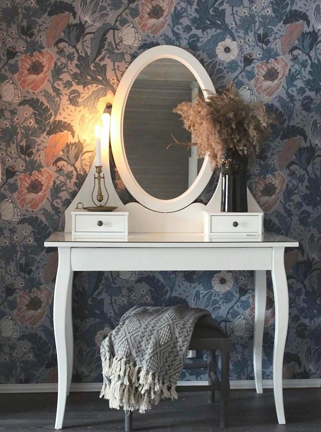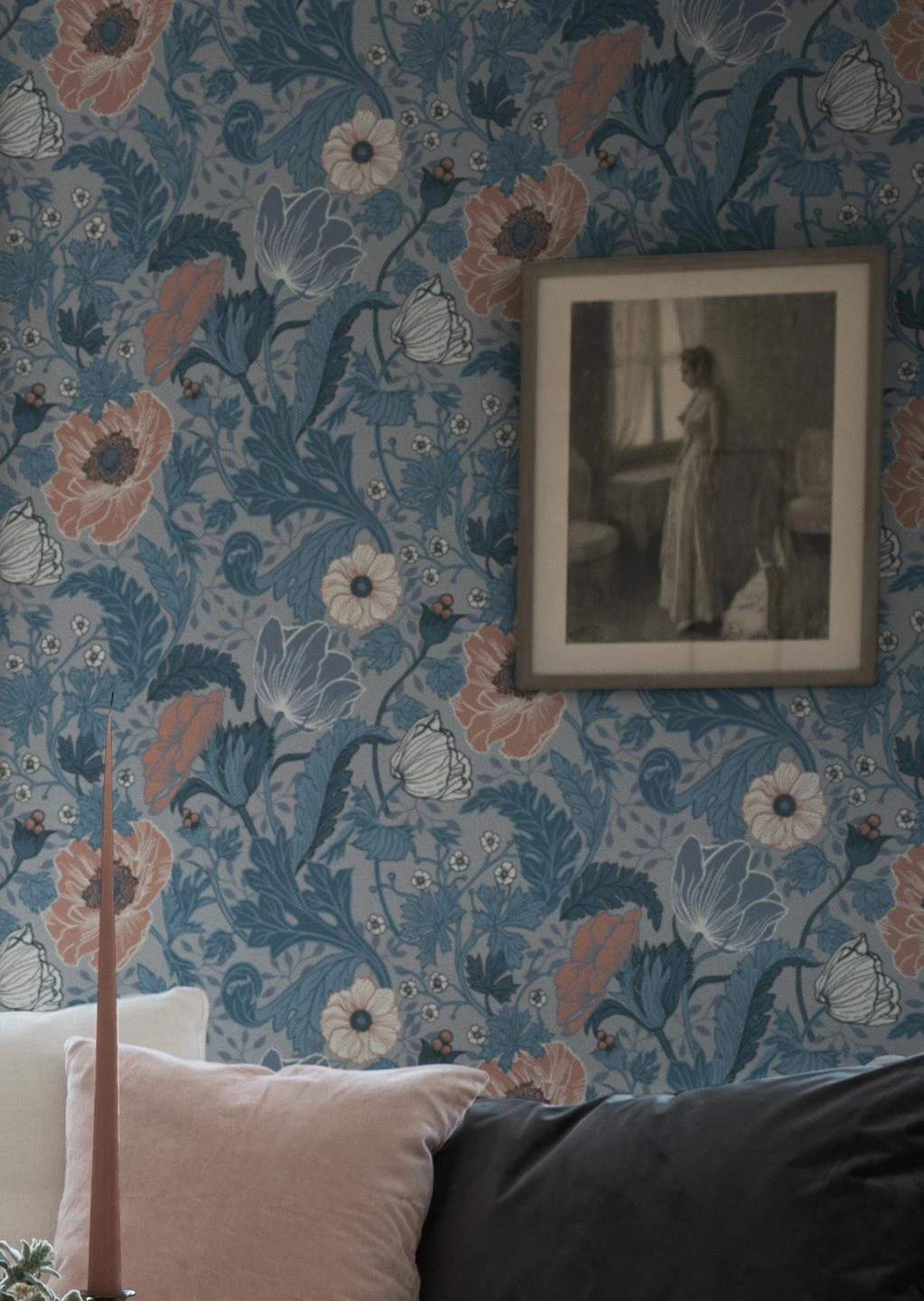 Keine falsche Bescheidenheit lautet das Motto dieser blumigen Designtapete. Soria in Blau-, Grau-, Silber- und Rottönen liebt abwechslungsreiche zeichnerische Strukturen, was die fantasievolle Lebhaftigkeit der waschbeständigen Vliestapete ausmacht.
