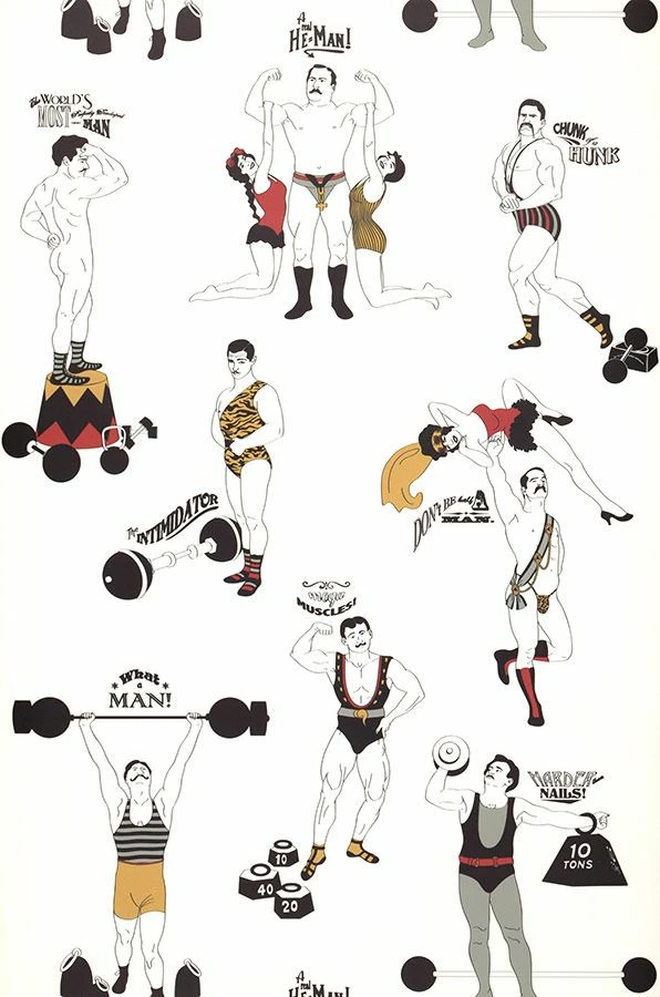 Die tollkühnen Helden in ihren historischen Sportanzügen, oder auch mal nackt wie Gott sie schuf, zeigen ihre geballte Kraft in allen Positionen und mit gekonnter Leichtigkeit. Die humorvolle Dupenny Designtapete sorgt für ein freches Grinsen und jede Menge Gesprächsstoff in alle Richtungen. Trotz optischem Nostalgie-Faktor beweist die Mustertapete jede Menge kokette Modernität.
