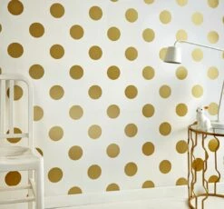 Tausend Punkte gibt es für diese romantisch majestätische Design Tapete mit goldglänzenden Polka Dots, die Frauenherzen höher schlagen lässt. Die positiven Eigenschaften liegen auf der Hand: Sie stärkt das Selbstbewusstsein, verleiht kreative Flügel und ist eine Belohnung für die großen und kleinen Leistungen des Alltags. Und ein bisschen dekadent darf es auch sein.