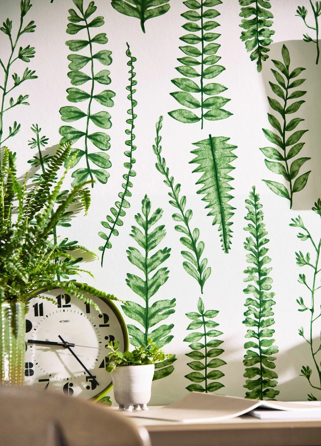 Die Formenvielfalt der verschiedensten Farnarten strukturiert Ihre Wand mit ihren leichten, symmetrischen Blättern und den leuchtenden Grüntönen. Auf dem cremeweißen Untergrund der Vliestapete sind die Farne luftig wie in einem botanischen Album angeordnet. So wirkt die Tapete hell und freundlich. Besonders reizvoll ist das entstehende Zusammenspiel zwischen dem botanischen Design und Ihren Grünpflanzen als Deko-Elementen.