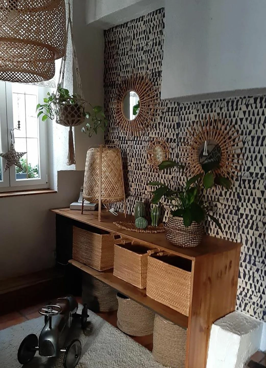 Mexikanische Geometrie oder doch ein ägyptischer Geheimcode? Die Design Tapete von Le Monde Sauvage lässt Ihnen hier jede Menge eigene Definitionsfreiheit. Auch Fellzeichnungen afrikanischer Wildtiere können als Assoziation den Raum beflügeln. Echter Handdruck im Batikverfahren und ein hochfeines Papier machen jedes einzelne Bogenblatt der außergewöhnlichen Tapete zu einem Unikat. Ordnen Sie nach Lust und Laune an und verändern Sie so experimentell die Musterwirkung. Leben Sie Ihre wilde Kreativität in Räumen mit dem gewissen exotischen Extra.
