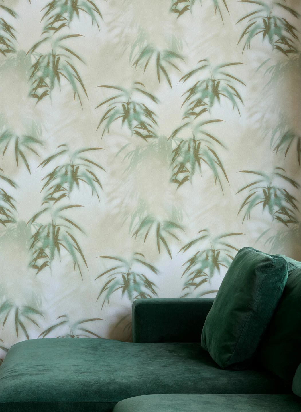 Wie ein Traum von Palmen wirkt die Tapete „Tonga“ durch die besondere Maltechnik: Wie aufgesprüht in unterschiedlich hellen Grüntönen, entstehen die Silhouetten der Palmwedel in verschiedenen Abstufungen der Schärfe. So kommt ein faszinierender Eindruck von räumlicher Tiefe, von Nähe und Ferne zustande, der die Palmblätter wie aus dem Nebel hervortreten lässt. Durch ihre Vinyloberfläche können Sie die scheuerbeständige Vliestapete auch im Badezimmer wirkungsvoll einsetzen.