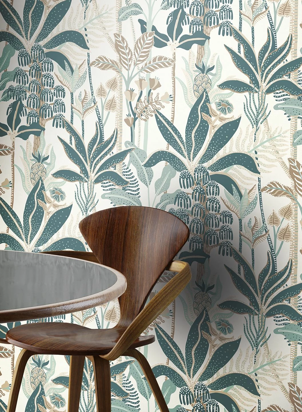 Die Vielfalt der Bäume, Büsche, Blumen und Früchte auf der Vliestapete Tropical Dream konzentriert sich auf wenige Farbtöne: Helle Braun- und Beigenuancen und ruhige Blautöne schaffen einen Farbraum, in dem der Formenreichtum der Blätter und Blüten umso mehr in den Vordergrund tritt. Gleichzeitig schaffen Sie mit Möbeln in den passend abgestimmten Farben schöne Anknüpfungspunkte und setzen die unberührte, friedliche Welt des tropischen Dschungels in Ihren Raum hinein fort.