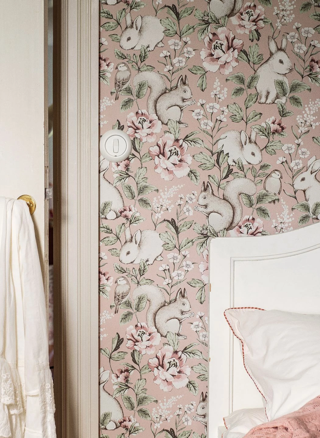 Bezaubernde Eichhörnchen, Kaninchen mit großen Augen und zierliche Meisen tummeln sich auf dieser Tiermotiv-Tapete zwischen großen Blumen. Pastellfarben – Cremeweiß, Blassgrün, Rosenholz und Weißbraun – auf dem hellbraunen Untergrund geben der Vliestapete eine zarte romantische Anmutung. Für ein verspieltes Kinderzimmer oder eine Portion Romantik im Schlafzimmer, kombiniert mit Weiß oder einer der passenden Farben, ist „Twiggy“ perfekt.
