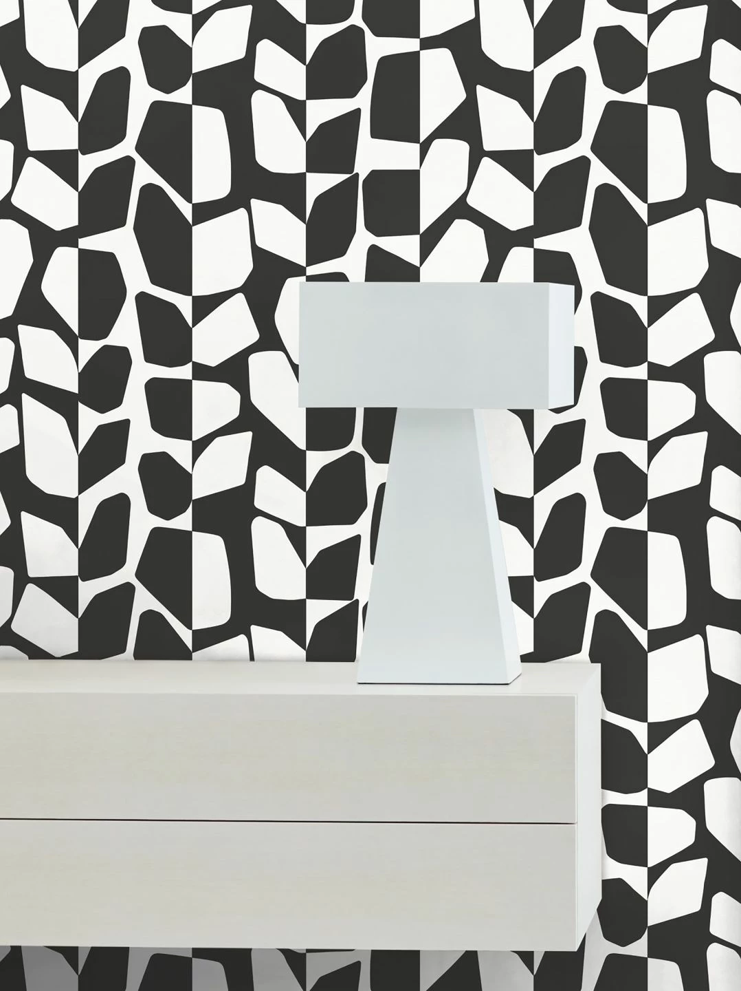 Urano vereint Gegensätze: tiefes Schwarz und strahlendes Weiß sind die kontrastreichen Farben, die unregelmäßigen Formen stehen im Kontrast zu ihrer geradlinigen Anordnung. Das abstrakte Design gibt der Vliestapete einen ausdrucksvollen Charakter, an dessen Seite sich Möbeln in starken Farben und in auffälligen Formen behaupten können. Mit Urano schaffen Sie sich einen charismatischen, energiegeladenen Raum.