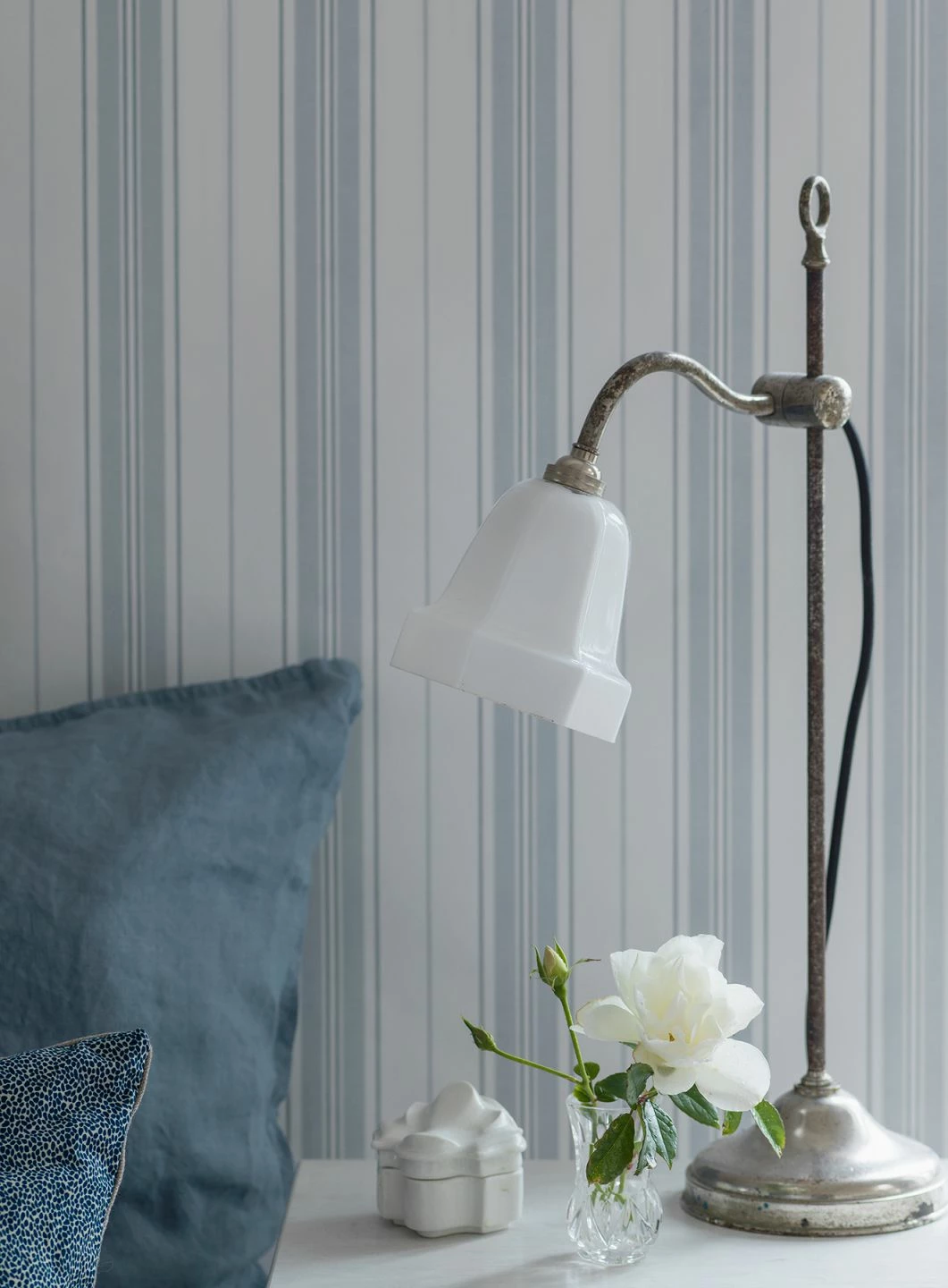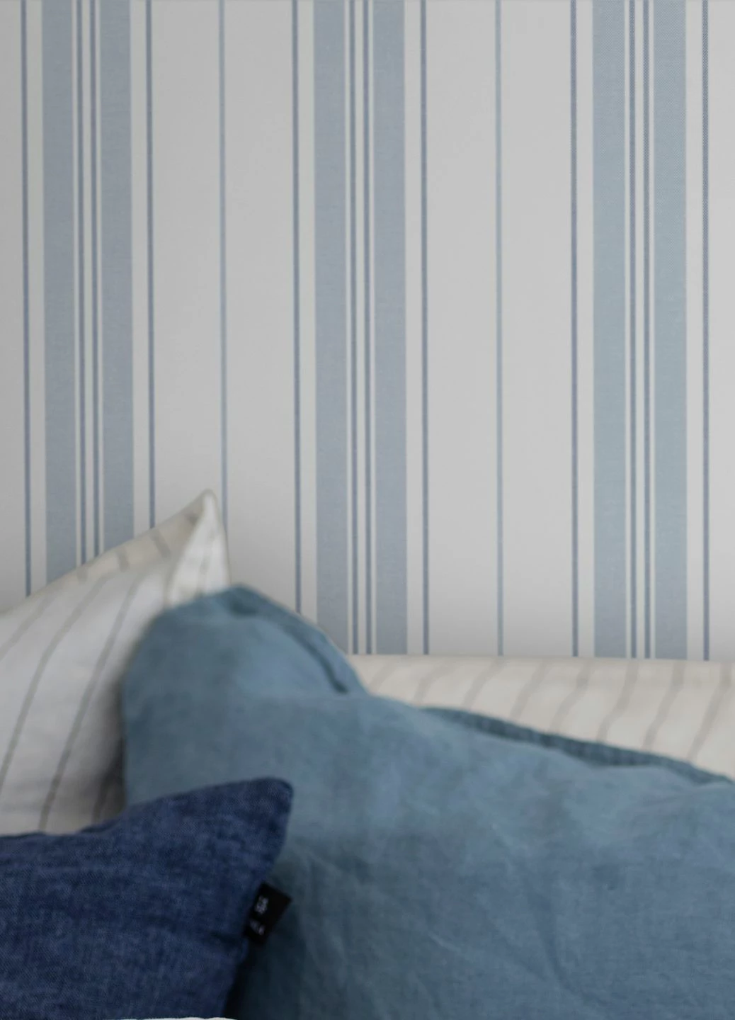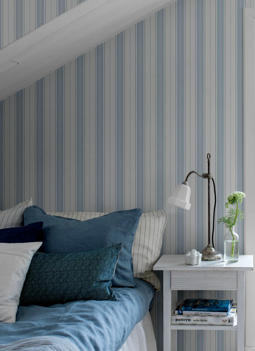 Maritime Country-Romantik zieht mit diesem luftig-leichten Streifendessin in den Raum ein. Zart und dennoch unwiderstehlich passt sich die glatte Vliestapete mit waschbeständiger Oberfläche harmonisch an Einrichtungen, die in Blau-Weiß- und Grautönen gehalten sind, an. Einen warmen Kontrast schaffen Echtholzmöbel in hellen Holzfarben.